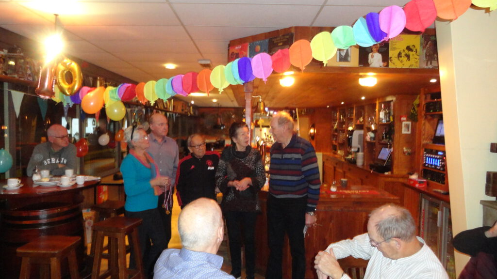 De stemming is alle weken opperbest, kwinkslagen gaan over en weer en bij het kopje koffie na afloop komen de verhalen pas goed los. Maar ook bij lief en leed steunen de leden elkaar, geen wonder dat deze hechte groep er een gezellig feest van wist te maken.