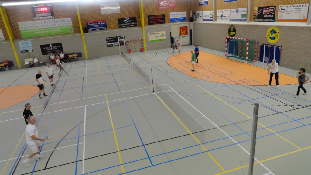 In 2009 werd gestart met 12 leden. Een halve hal was toen genoeg. Inmiddels zij er 32 leden en wordt er elke donderdag van 9.15 – 10.45 uur gespeeld op 6 banen in de hele hal.