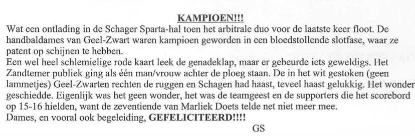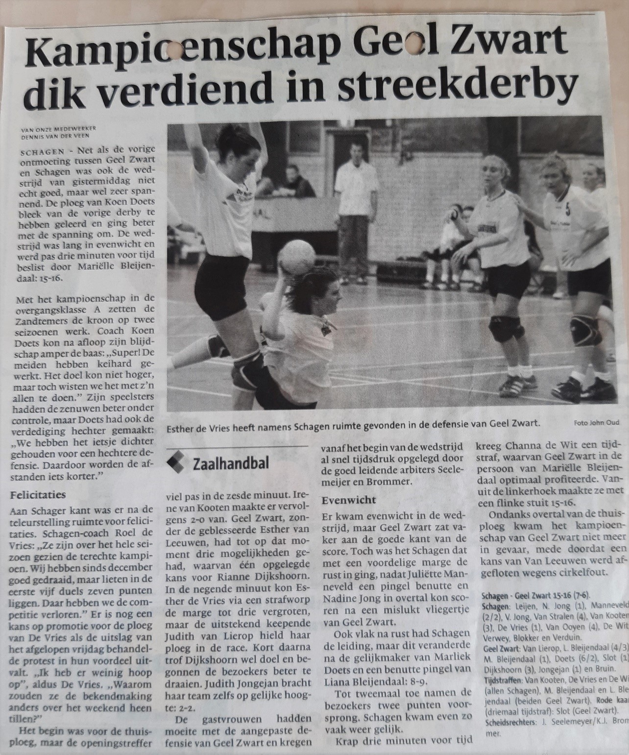 Hieronder een krantenknipsel en de reacties uit de Sportvriend van de kampioenswedstrijd van 14 maart 2004.