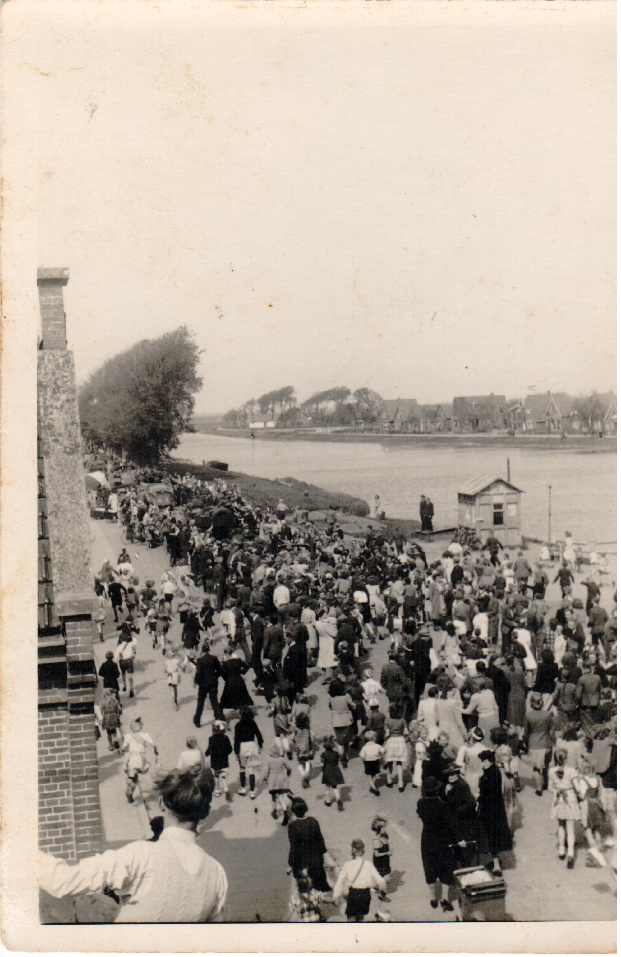 Op dinsdag 8 mei 1945 reden over de Rijksweg de Canadese legervoertuigen ’t Zand binnen. De bevrijding was nu voor iedereen werkelijkheid. Het hele dorp liep uit om de bevrijders te begroeten (eerste foto). In juli 1945 was de viering van deze herwonnen vrijheid (tweede foto). Wij willen 75 jaar later op gepaste wijze aandacht schenken aan 75 jaar Vrijheid. (klik op de foto’s voor een grotere versie)