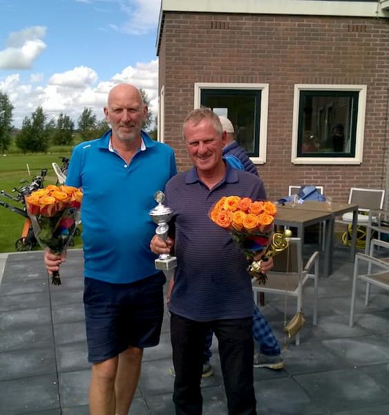 Aan de start voor de laatste etappe en na afloop van de laatste etappe; het zit erop!
