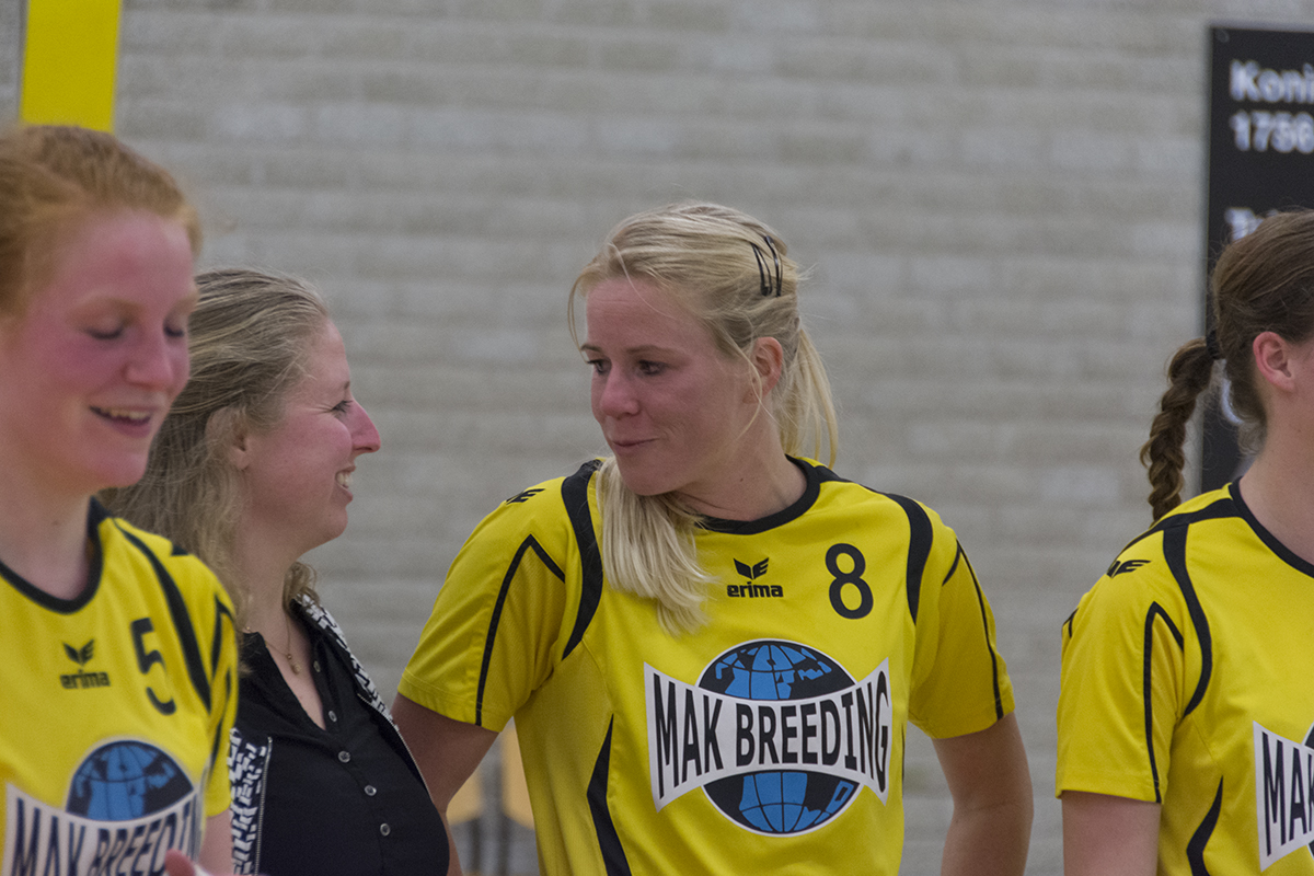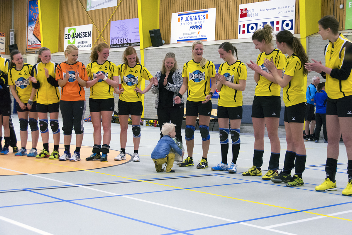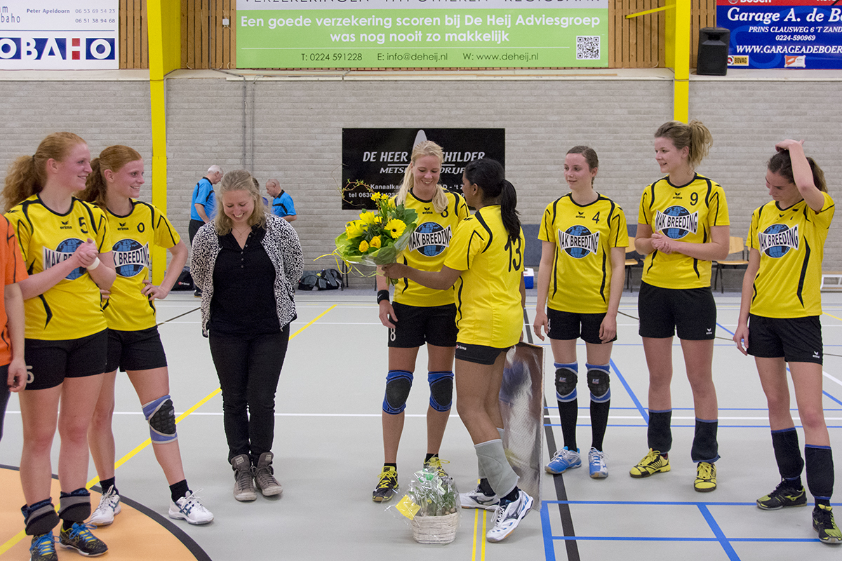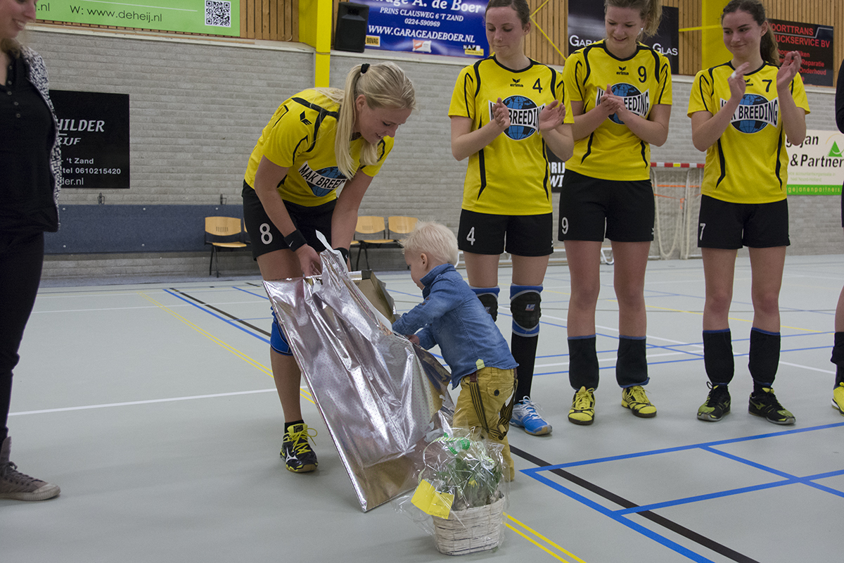 In de thuiswedstrijd tegen NEA kwam er voor de linkerhoekspeelster een einde aan haar loopbaan. Het zijn juist de thuiswedstrijden – met muziek voor de wedstrijd en veel publiek – die haar de kick gaven van het spelletje. Na afloop kreeg ze een ingelijst shirt, een herinneringsboek en warm applaus van de toeschouwers. Fotograaf André Sonderman was erbij en legde het afscheid vast op de gevoelige plaat.