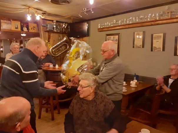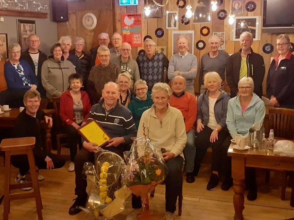 Sjaak Vonk had een gouden racket voor Gerard gemaakt, die door Kees Deutekom werd overhandigd, omdat Sjaak vanwege vakantie in het buitenland verbleef. Onder het genot van koffie met een tractatie werd nog gezellig nagepraat.