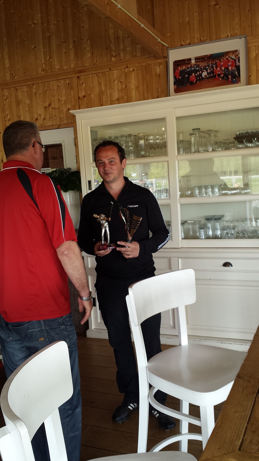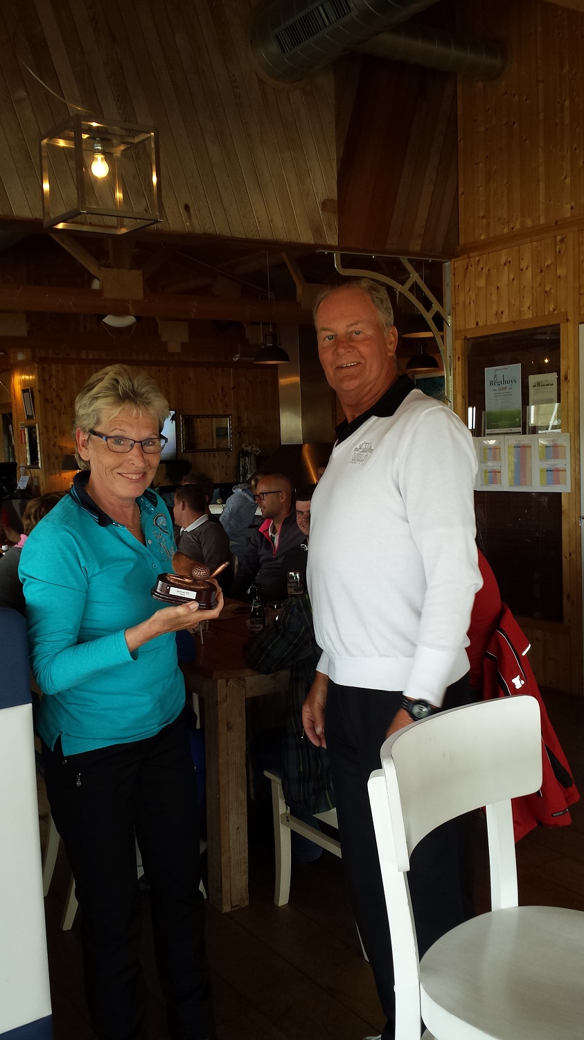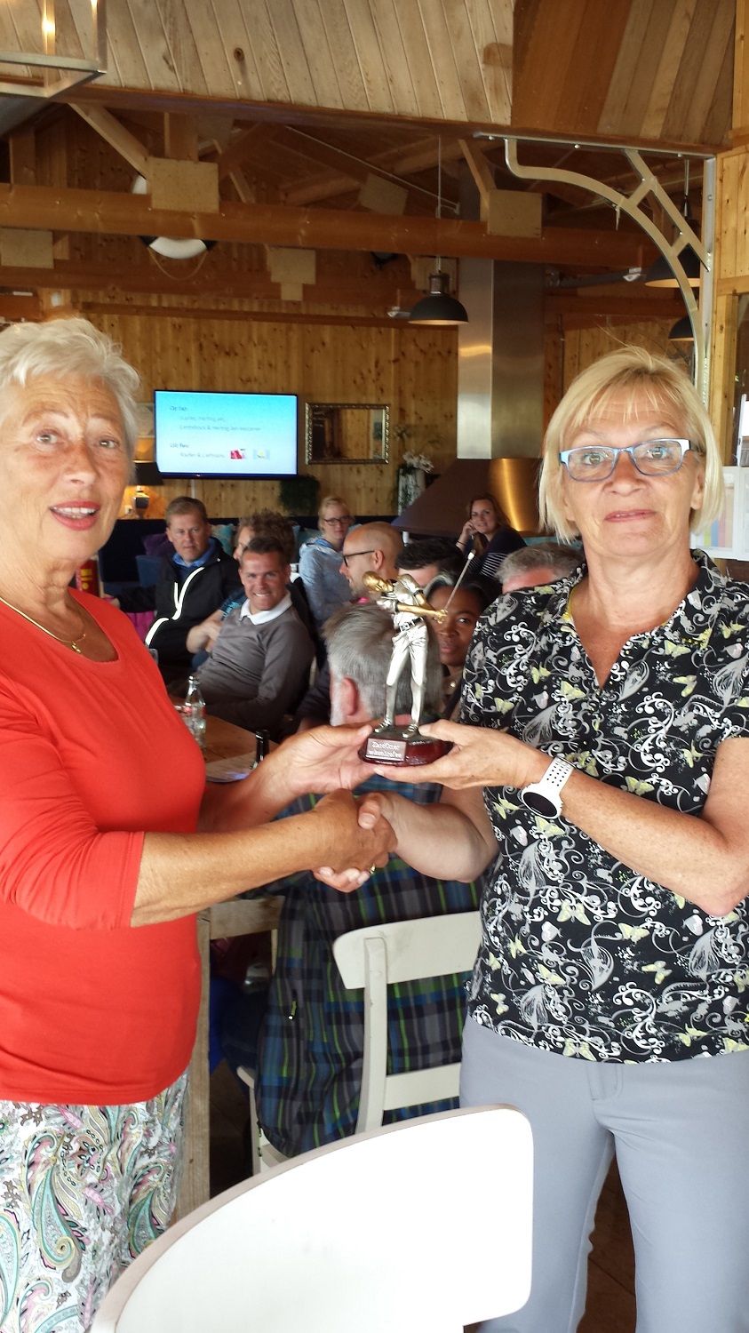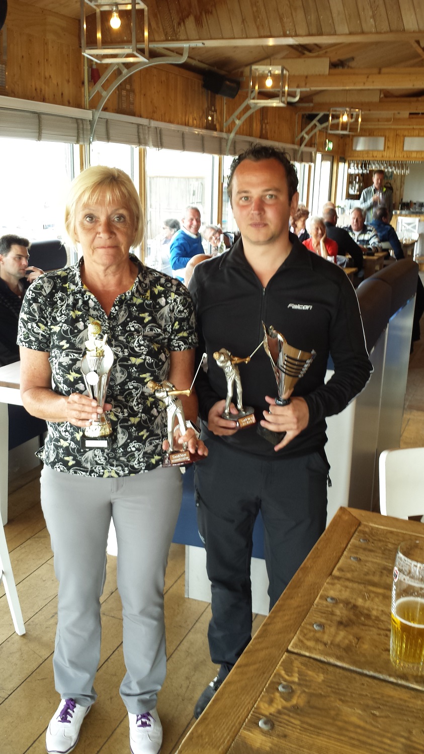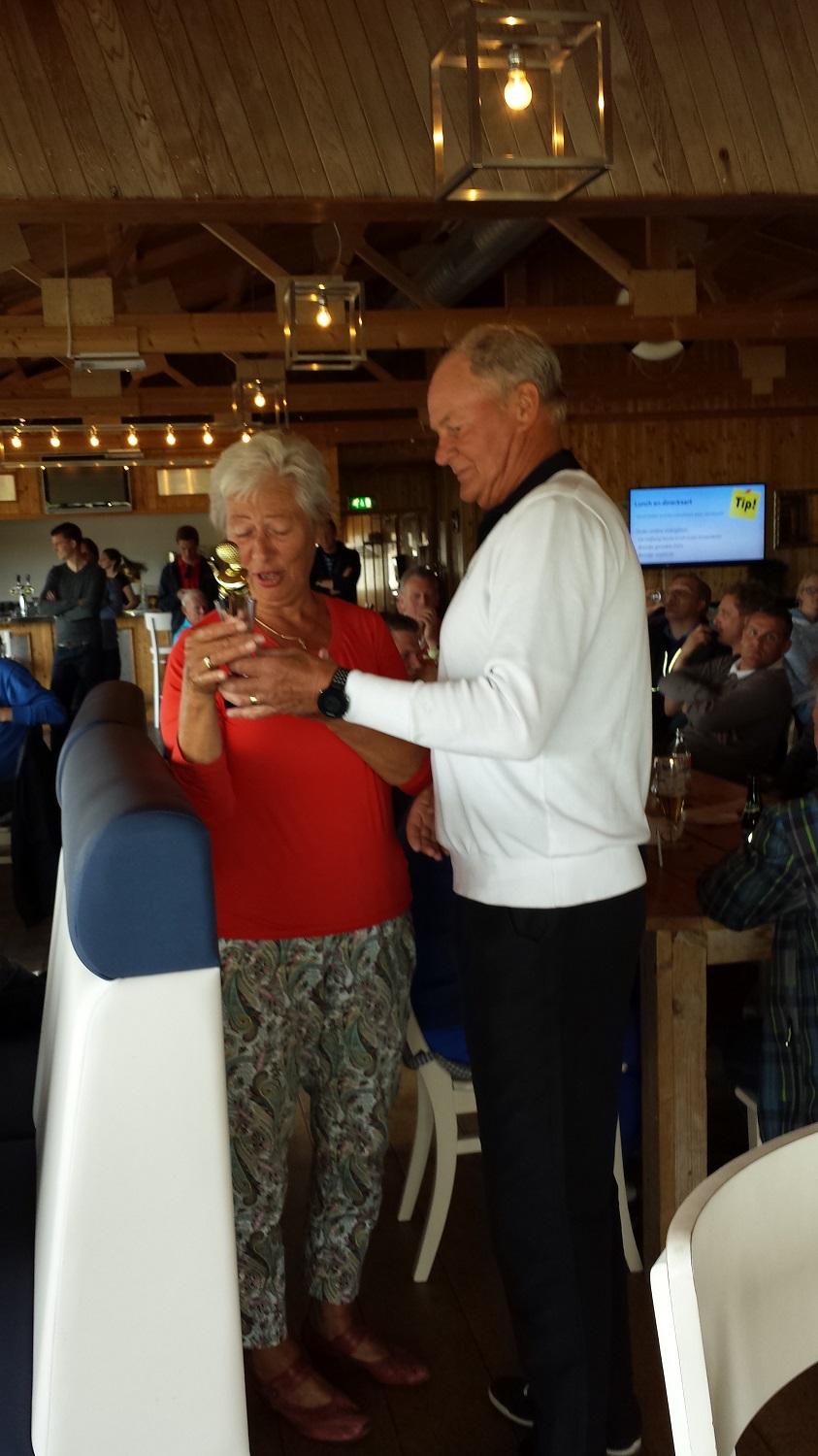 Met Baltus kreeg het toernooi na Hans Dudink en Cees ‘Klos’ de Wit weer een nieuwe winnaar. De kampioen gaf na afloop zijn geheim prijs. ,,Koop een golfuitje op de veiling van de Stichting Stimulering Dorpsactiviteiten. Neem er wat lessen bij en zorg ervoor dat je plezier in het spelletje hebt.” Op de tweede plaats eindigde Arie Tamis voor talent Koen Schouten. Bij de dames kwam er na twee jaar een nieuwe winnaar naar voren. Bea Jongejan zegevierde voor Els Smit. Aftredend kampioen Ina Boerdijk nam het brons mee naar huis. De beide kampioenen winnen naast de eer ook een mooie wisselbeker. De neary bij de mannen was voor Wim Boerdijk en bij de dames voor Els Smit. De longest drive bij de heren werd geslagen door Nico Laan en bij de vrouwen door Jannie Jongejan. Nico Laan kreeg een applaus vanwege een geslagen birdie. De eer van de poedels ging naar Leonie van Diepen en Ton Hoogeboom. Na afloop werd er nog gezamenlijk gegeten en onder het genot van een drankje keek de organisatie terug op een geslaagde golfmiddag. Op de aangeleverde foto’s is de prijsuitreiking te zien.