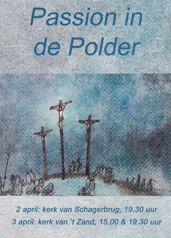 Passion in de Polder vertelt het beroemde verhaal van de lijdensweg van Jezus Christus tot aan zijn kruisiging op de berg Golgotha. Voor de vijfde maal brengen de kerken van Schagerbrug en ’t Zand i.s.m. de Stichting Zinvol Zijpe dit verhaal, maar nu in een bijzondere editie waarin de hoofdrolspelers het verhaal vertellen vanuit hun eigen perspectief in een sobere, maar niet minder indrukwekkende uitvoering.