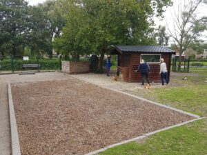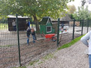 Het restant werd dus op zaterdag door bewoners uit de Mauritsstraat nog uitgereden. Ook een pad in en de voederplaats in het hertenkamp werden met schelpen aangevuld. Daarna werd met een rol de schelpen enigszins vast gerold, zodat mensen met een rollator ook weer door het park kunnen lopen. Andere bewoners schilderden de nachthokken. Doordat de dieren tegen het hout aan schuren, kan dit ieder jaar wel weer opnieuw woerden gedaan. Maar doordat we het ook ieder jaar weer schilderen, ziet het geheel er nog heel knap uit. Ook de bankjes in het park zijn weer van een nieuwe verflaag voorzien en de picknicktafel bij de vijver is gerenoveerd en weer in dennengroen geschilderd.