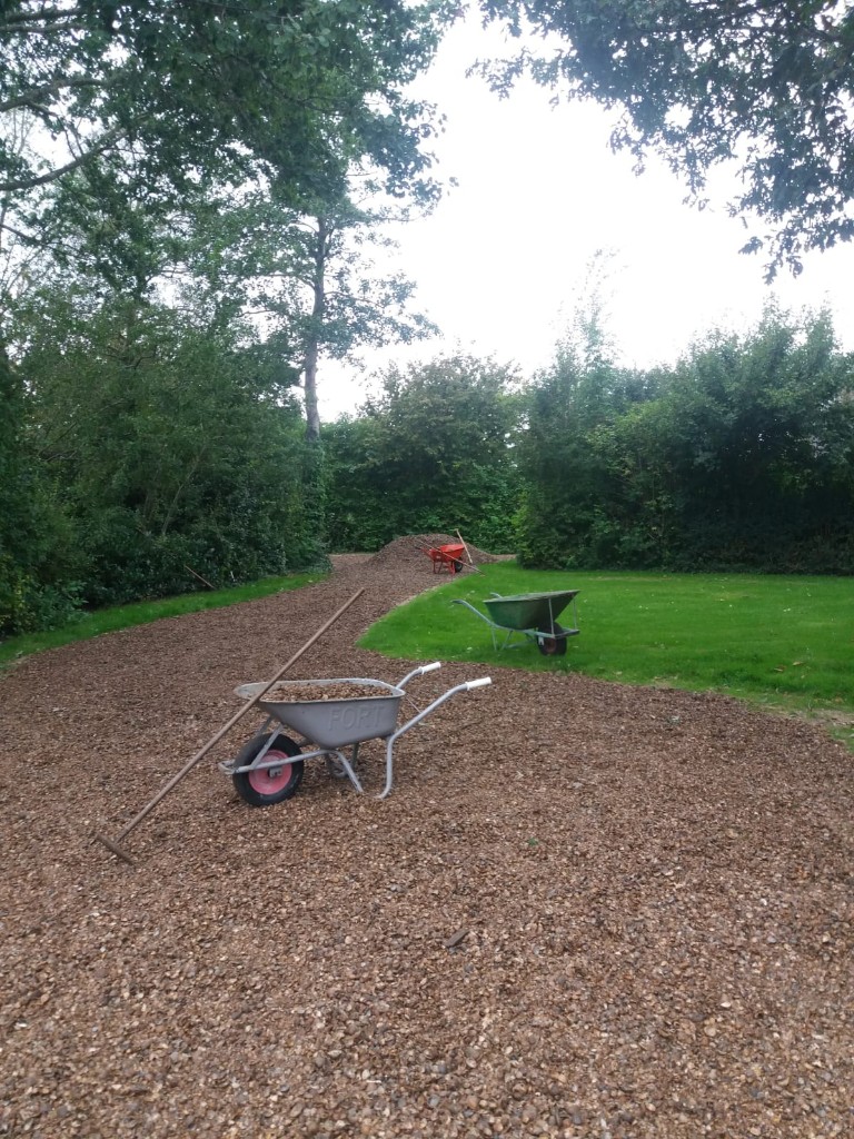 De groep vrijwilligers die het hertenkamp beheren en onderhouden en waarvan een aantal in de Mauritsstraat wonen, had van het voorjaar aangegeven dat het schelpenpad in het park op sommige punten slecht werd. Contact met de gemeente leerde ons dat zij ons wel schelpen wilde leveren als we ze zelf wilden verspreiden. Ah, een mooie actie voor Burendag. Dus met gemeente afgesproken dat we dit in de week van 20 september op zouden pakken. Zo gezegd zo gedaan. Op donderdag 20 september werd er 10 kuub schelpen gestort en een aantal vrijwilligers begon al vast aan het uitrijden en verspreiden. Een kleine hoeveelheid werd nog bewaard voor de zaterdag van Burendag.