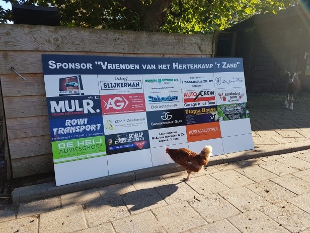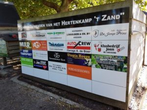 De stichting Vrienden van het hertenkamp ’t Zand, moet nu dus geld inzamelen om dit soort extra onkosten te kunnen betalen. En gelukkig zijn er dus al 19 bedrijven die daarbij behulpzaam zijn. Maar er is nog ruimte vrij op het bord.