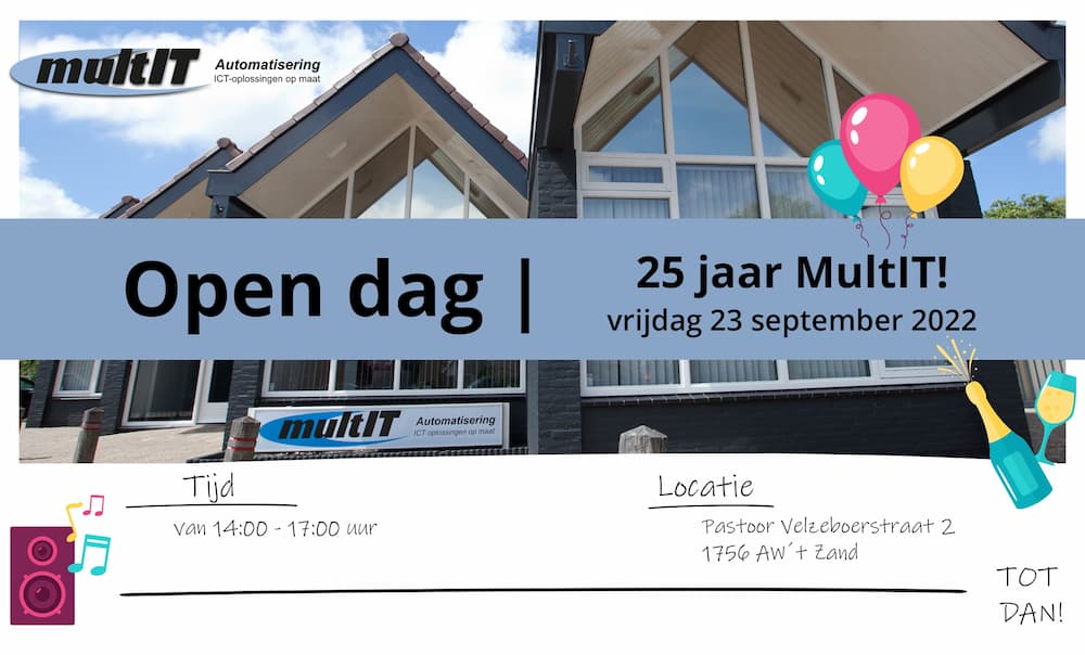 Hét IT bedrijf van ’t Zand en omstreken bestaat 25 jaar! Wat een mijlpaal! Vrijdag 23 september vieren ze dit met een open dag. Men is welkom tussen 14:00 en…