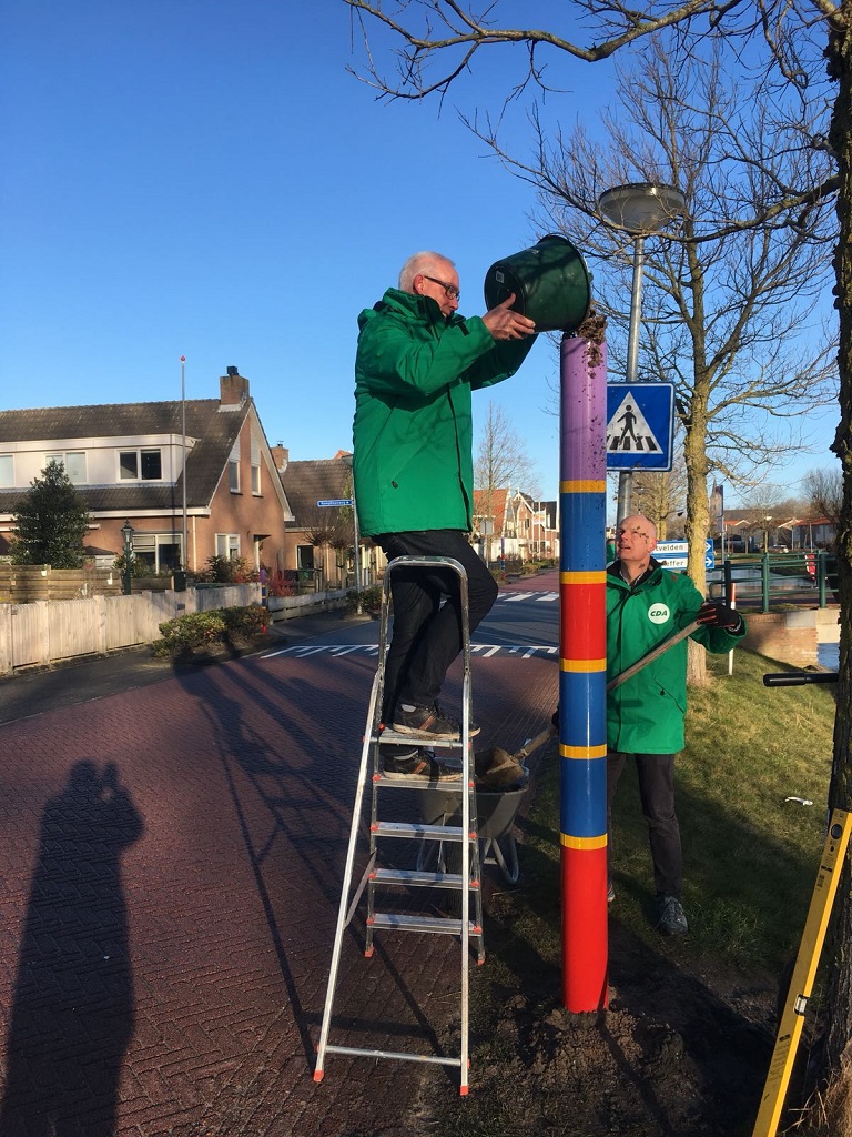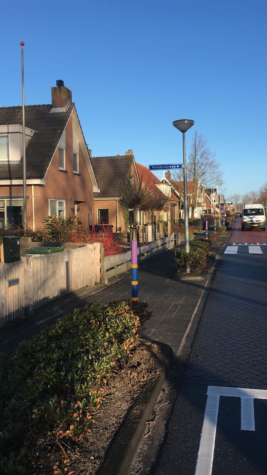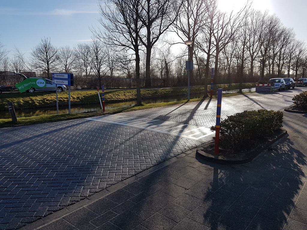 Helaas is ook dat niet gelukt. Vandaag hebben leden van het CDA en Dorpsraad de schoolzone zelf aangebracht. Met hulp van stratenmaker Jan Schilder en de ondernemer van het jaar Art & Metal (Peter Johannes) zijn een 6-tal prachtig gespoten palen aan weerszijden van de weg geplaatst, in de hoop dat dit de snelheid van de weggebruikers zal afremmen. CDA hoopt hiermee een veiliger oversteek gerealiseerd te hebben, met dank aan de Zandtemer ondernemers.