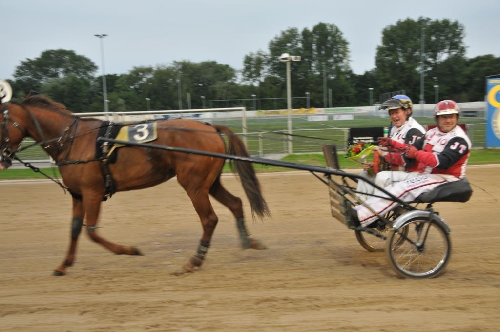 Op de drafbaan van Alkmaar werd maandag 25 augustus de Dorpendag verreden. De dorpen Callantsoog, Schagerbrug en ´t Zand leverden sponsors voor de verschillende koersen. Elk dorp leverde ook een dorpsbekende om deel te nemen aan een zogenaamde duokoers, waarbij zij op een speciale duokar meerijden met een pikeur en een koers a trois verrijden. Zandtemer Cees ´Lap´ de Wit werd hiervan de winnaar met dorpsgenoot Jaap Terstal als stuurman.
