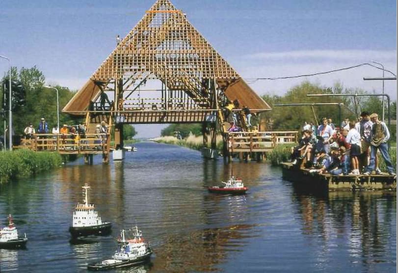 Met vlag 2 is Tom een hele andere kant op gegaan. Hier zie je ook meer een plaatje in terug. Je ziet de bollenvelden en het dorp op de achtergrond. De vorm van de brug zit ook weer onderin verwerkt.