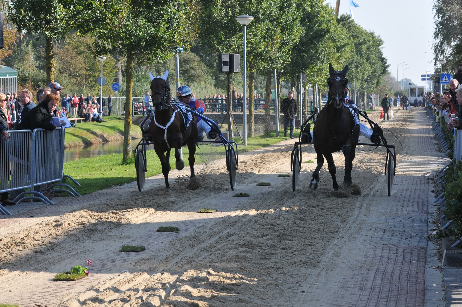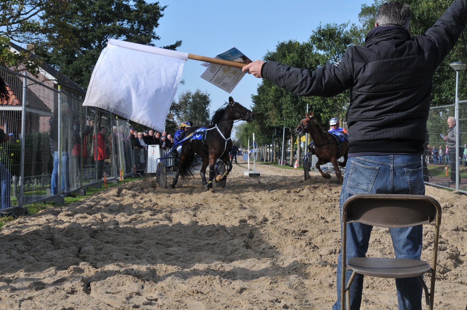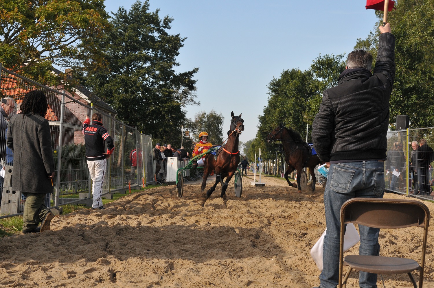 Elma Alki en Jan Thijs de Jong hebben maandag verrassend de laatste kortebaan van het jaar gewonnen in ’t Zand. De vierjarige merrie stond pas een kleine twee weken op stal bij Rob de Vlieger en sloeg in haar eerste start voor haar nieuwe werkgever direct bijzonder sterk toe. Donate Groenhof (John Dekker) werd tweede en verzekerde zich daarmee van de titel Paard van het Jaar. Een verslag van de site van kortebaandraverijen.nl met foto’s van Dirk Smit.