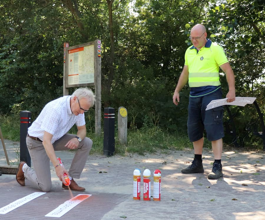 ‘Geef elkaar de ruimte’ en ‘Houd 1,5 meter afstand’: deze teksten zijn straks te zien op de straten in de gemeente Schagen. De gemeente gaat de teksten met spuitkrijt aanbrengen op drukke plekken zoals de strandopgangen in Callantsoog en Petten, de markt in Schagen, strandje De Wiel en de ingangen van het Makado Centrum.