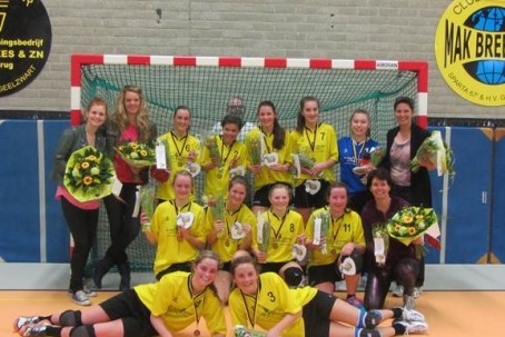 ‘De laatste wedstrijd van het zaalseizoen. De meiden wilden heel graag winnen om zo kampioen te kunnen worden. De uitwedstrijd tegen Con Zelo was een uitermate goed gespeelde wedstrijd en wonnen ze dan ook met 29-10. Toch wel een beetje zenuwachtig en met vier wissels (gelukkig geen geblesseerden) op de bank begonnen ze aan de wedstrijd. Hun eigen idee was om het tempo hoog te houden en lekker veel op de break te spelen. Met een 5-1 verdediging werd dit goed opgepakt. Ook de “gewone” aanval draaide lekker. Er werd keurig druk gezet en mooie passeerbewegingen gemaakt, welke goed werden afgerond. Ook werd er veelvuldig een wissel ingezet. Heel veel progressie maken deze meiden, want aan het begin van het seizoen zagen we nooit een wisseltje. Ook het druk zetten gaat vele malen beter. Dit alles resulteerde in een eindstand van 41-15.’