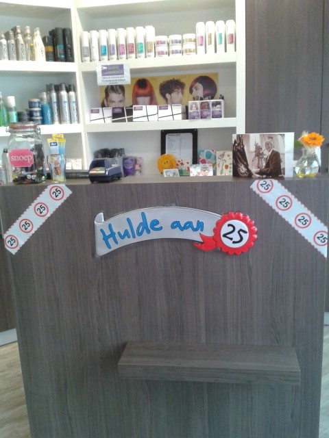 Het jubileum werd voor eigenaresse Ellen Zomerdijk één met gemengde gevoelens. In de week van het feest overleed haar vader. Een week later – op vrijdag 10 april – hadden de collega’s Eline en Shirin de salon versierd. Ellen, gefeliciteerd!