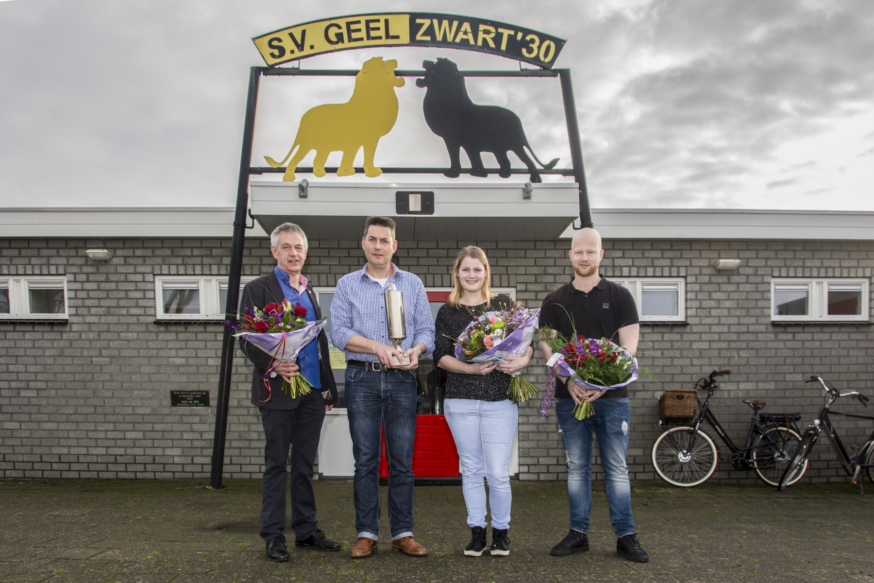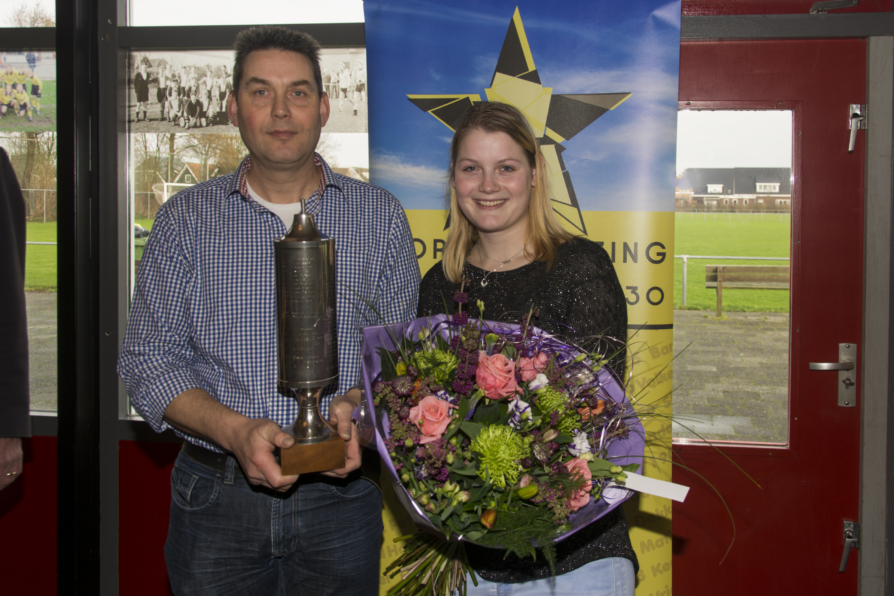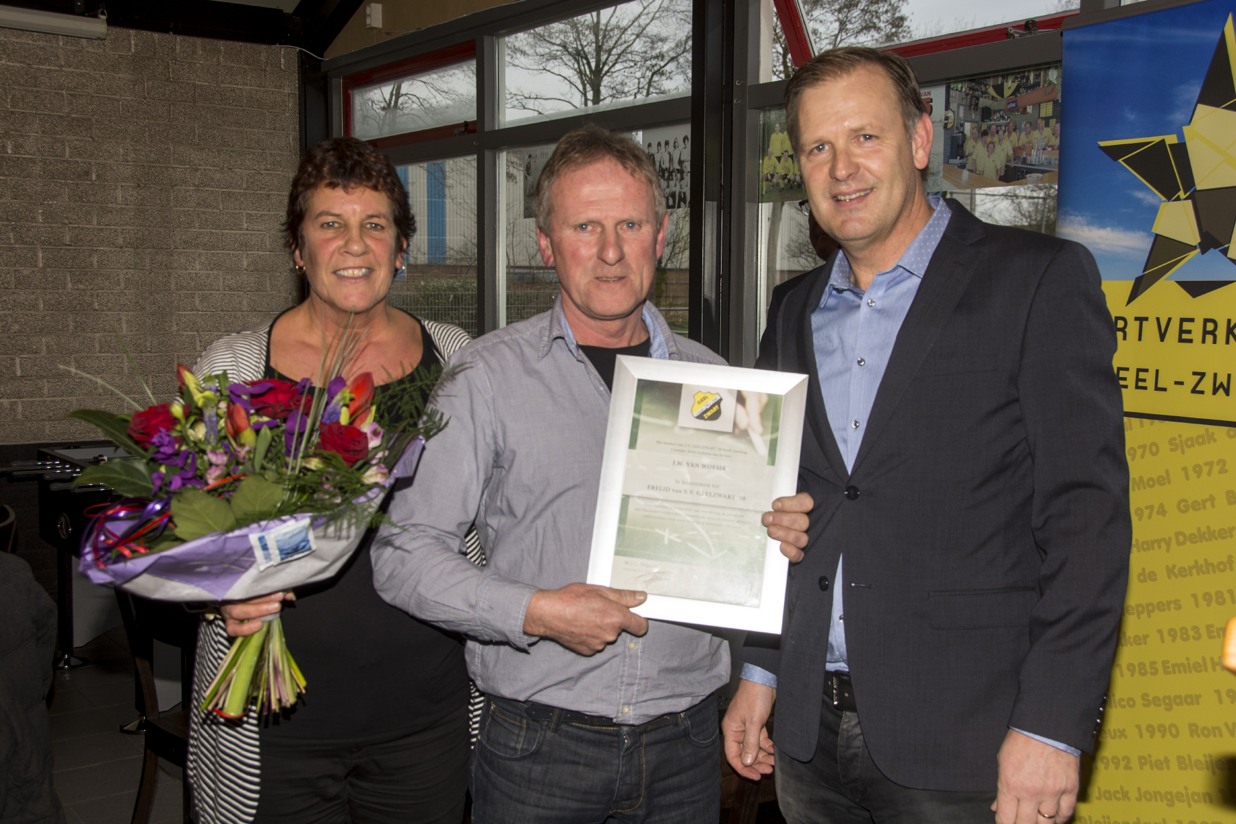 Vader Gerard en dochter Irene Schouten hebben de sportverkiezing Geel-Zwart 2015 gewonnen. Het duo deed dit jaar mee aan de Tour du ALS en zamelde zo veel geld in. Een gedeelde tweede plaats was er voor doelman Mats Dekker en voorzitter van de jeugdcommissie Jan-Arie Strooper. Fotograaf André Sonderman was aanwezig en maakte mooie foto’s.