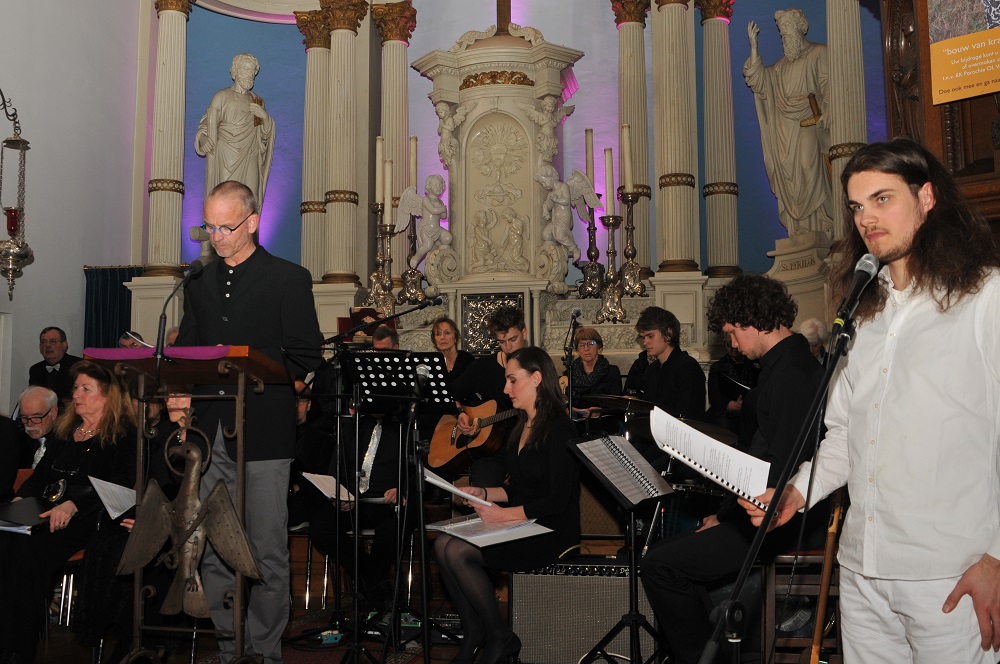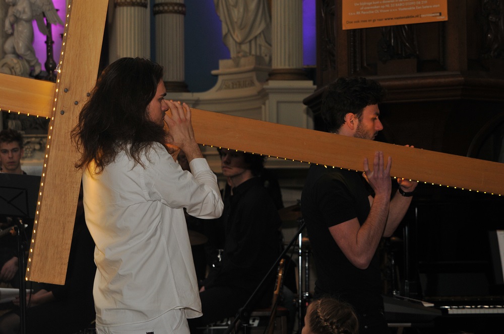 Het koor samen met de kinderen die dit jaar hun eerste communie gaan doen, kwamen lopend de kerk binnen en gezamenlijk met de band werd het lied Hossana gezongen. Dat zette meteen al een goede sfeer neer. Vervolgens begon verteller Theo Kooijman aan het indrukwekkende verhaal van de laatste dagen van Jezus. Sommige passages werden door rolspelers voorgedragen. Waarbij op de achtergrond op een groot scherm foto’s waren te zien, waar die passages ook nog eens werden uitgebeeld. Jezus, vertolkt door Jasper Oudhuis uit Schagerbrug, was in zijn witte kledij en lange haren een imposante verschijning. Maar ook Lizzy Dekker en Sigrid Smit vertolkten hun rollen met verve. Sigrid zong solo, begeleid door Robert Smit, het aangrijpende Margherita (van Marco Borsato). Ook Lizzy had een solo en zong het zeer bekende en boeiende lied “Zeg me dat het niet zo is” (van Frank Boeijen). Ook nu begeleid door de prachtige gitaarklanken van Robert. Aan het einde zongen beiden nog het lied “Ga maar vast vooruit” (van Frederique Spigt). In totaal waren er negentien liederen, deels gezongen door het koor Appassionata onder leiding van Karel Kok en deels door “De Passionband”, waarbij het lied “Everything’s allright” opviel, omdat dit zeer mooi werd vertolkt door de zangers, Jennifer Terwel.