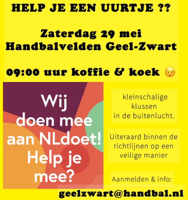 NLDOET op zaterdag 29 mei op de handbalvelden van Geel-Zwart.