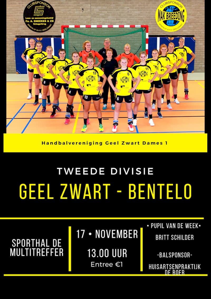 | 17 nov 15:30 uur | Geel Zwart DB1 – Tonegido DB1 | Scheidsrechter: Sanne de Wit |