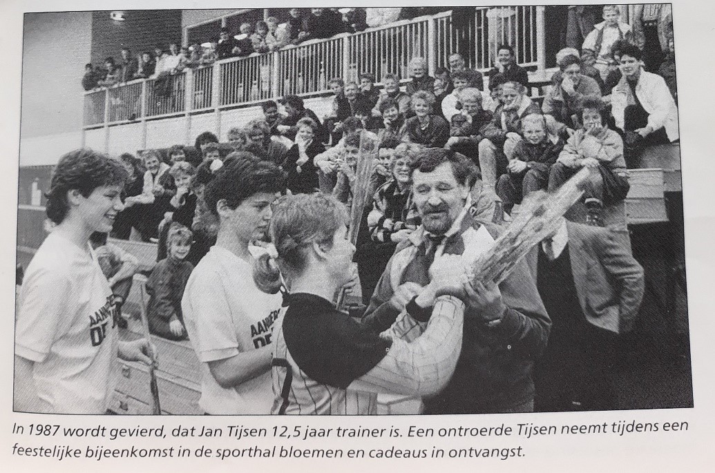 Jan Tijsen is maar liefst 17 jaar hoofdtrainer van Geel-Zwart geweest. Bij zijn sollicitatie vermeldde hij dat hij bij handbalvereniging Schagen als trainer werkzaam is geweest en daar vele successen mee heeft mogen maken. De reden van vertrek bij Schagen is dat hij een periode van vijf jaar(!) lang genoeg vindt en dan liever een andere vereniging gaat trainen. Jan heeft vele successen behaald met als sportief hoogtepunt de promotie naar de 2e divisie. In een interview met de Schager Courant in 1992 ter gelegenheid van zijn afscheid bij Geel-Zwart meldt Jan: ’’t Zand is in mijn ogen sportminded, maar zoekt altijd naar een mengeling van recreatie en prestatie. Ik heb me bij die situatie neergelegd en dat standpunt onvoorwaardelijk gerespecteerd. Dat is ook, denk ik, mijn grootste verdienste voor de club geweest.’ Ook kreeg Jan de waardering vanuit ’t Zand. In 1985 kreeg hij de eretitel ‘Sportvriend van ’t Zand’.