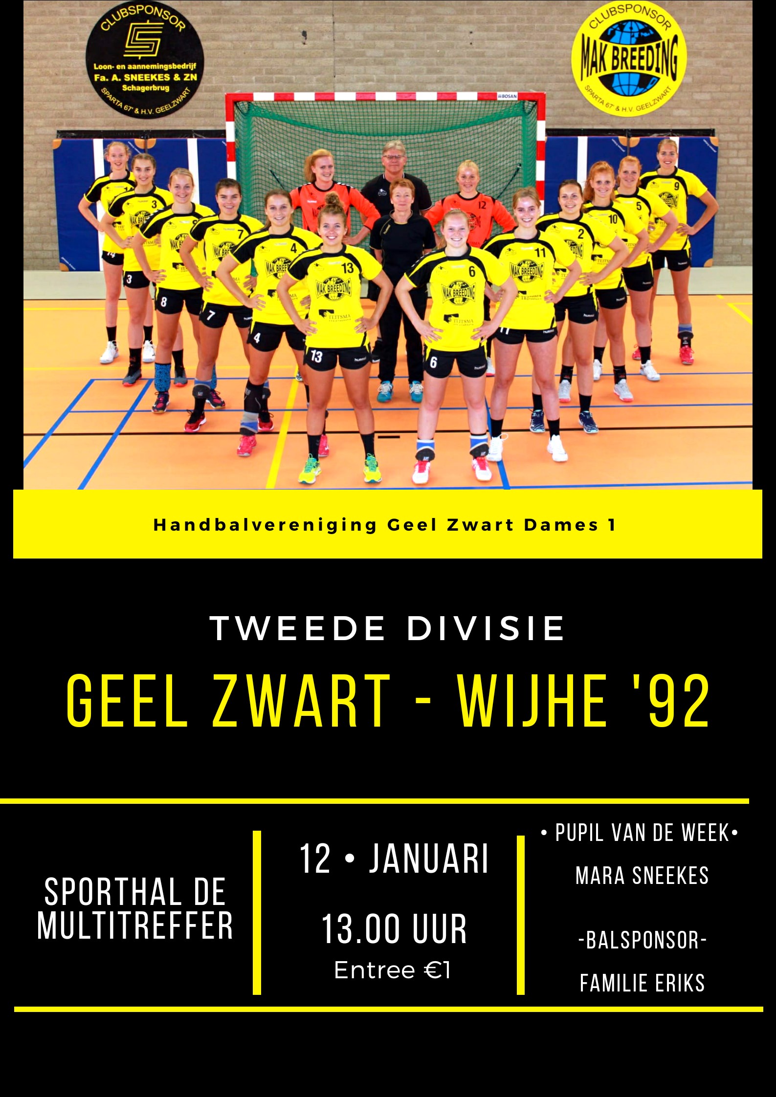 12 jan 13:00 uur Geel Zwart DS1 – Wijhe ’92 DS1