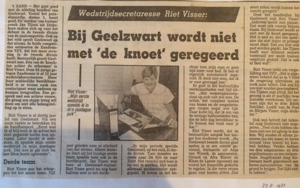 Onderstaand krantenartikel is van 27-8-1985 waarin Riet Visser is geïnterviewd.