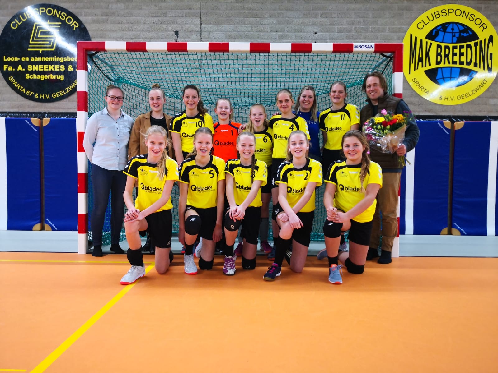 De snelheid zat er nog niet in, in de eerste helft en daardoor liep het nog wat moeizaam. Tot Jasmijn duidelijk versnelling aangeeft en soms heb je dat nodig om het team even mee te nemen. Ook Dawn kreeg de snelheid goed te pakken en uiteindelijk loopt het hele team na de rust weer met zijn allen in de aanval. Pleun had weer mooie aanspeelballen en als ze niet recht op de keeper gooit, dan zitten ook haar ballen er mooi in. Jennah haar aanvallen zijn niet echt snel, maar met een mooie schijnbeweging weet ze toch altijd wel haar punten te pakken. Van Nikki en Rosa weinig gemerkt van hun blessures, dus dat is ook weer om blij van te worden. Jaylisa had niet het gevoel dat ze goed bezig was op het doel in de 2de helft, maar dat is mij niet opgevallen, iedereen heeft wel zijn dingetjes in een wedstrijd, volgende keer gaat het vast weer beter. Nikki was goed bezig met verdedigen maar ik miste nog wel een beetje haar felheid daarin. Mieke was ook niet helemaal zeker van haar zaak en ik ga ervan uit dat de volgende wedstrijd weer met meer overtuiging gespeeld wordt. Je kan het gerust wel.