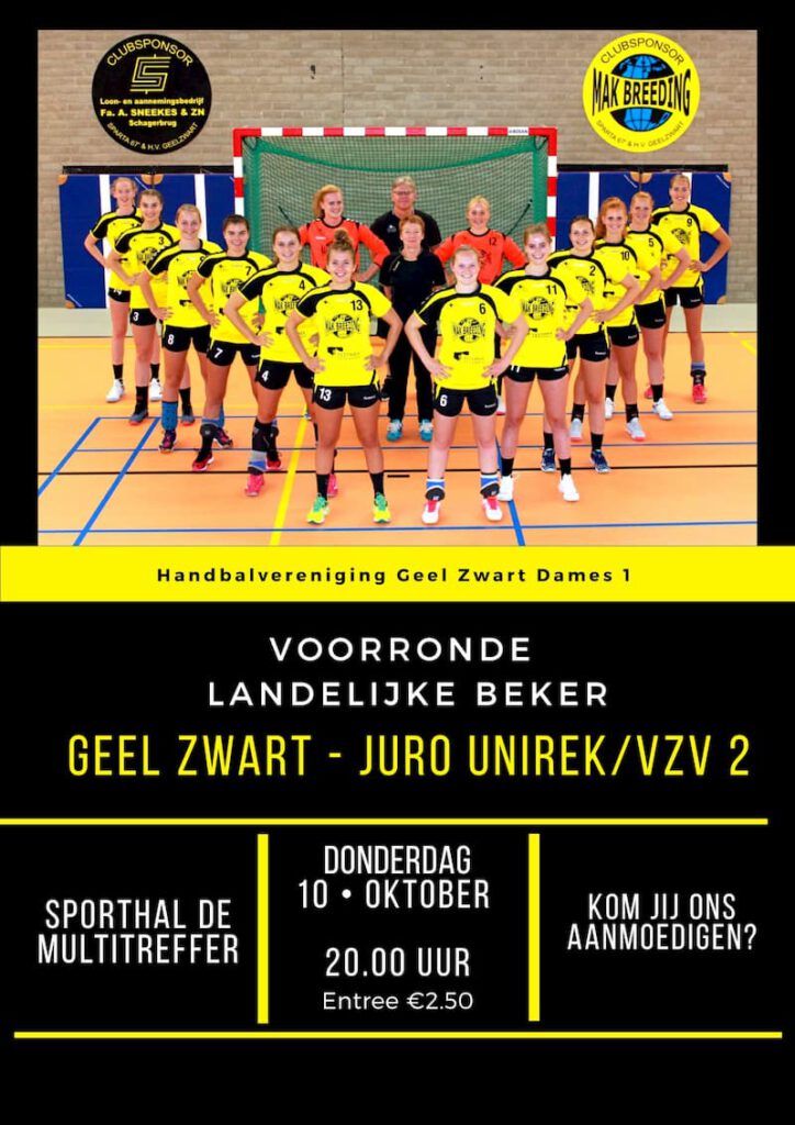 Donderdag 10 oktober speelt Geel-Zwart dames 1 een bekerwedstrijd tegen VZV dames 2. Voor de wedstrijd kunt u lootjes kopen De lootjes kosten €1,00 per stuk, 3 voor €2,50 en 7 voor €5,00. Onze sponsors hiervoor zijn: