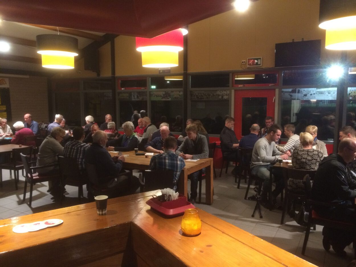 De heren De Vries heroverden de koppositie ten koste van Hans Dudink en Jos Smit. Jonne en Maarten zakten helaas een plaatsje en Mart en Adriaan zijn Carla en Trees weer voorbij. De stand na de vorige ronde was Adriaan een grote doorn in het oog. Steffan en Martin houden op het telformulier, naast de klaverjaspunten, de score van de genuttigde consumpties bij. Volstrekt overbodig want aan de bar wordt alles keurig bijgehouden en na afloop correct afgerekend. Daarvoor waren deze avond Peter van Kampen, Jos Tesselaar en John van Woesik verantwoordelijk en ze kweten zich meer dan voortreffelijk van hun taken.