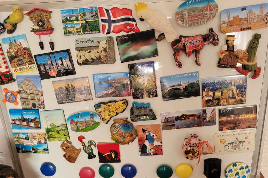 “Om mijn knieën”, zegt meneer. “Ik heb ze heel lang geleden ook eens gehad, maar door al die verhuizingen zal ik ze vast niet meer hebben.”