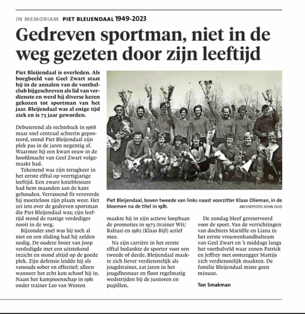 Piet Bleijendaal is overleden. Hieronder de in memoriam die Ton Smakman over hem schreef.