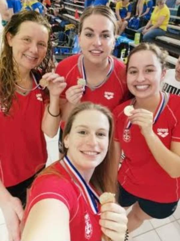 Mocht ik er tijd voor hebben dan train ik in het weekend bij mijn thuisclub msv Zeemacht Den Helder. Onlangs had ik met Zeemacht het ONMK (Open Nederlands Master Kampioenschappen). Drie dagen achter elkaar had ik afstanden gezwommen, vele individuele afstanden maar ook estafettes. Met de dames van Zeemacht hebben wij vier estafettes gezwommen met twee gouden medailles als resultaat op de 4 x 50 vrije slag en de 4 x 200 vrije slag. Dit was een erg gave wedstrijd om mee te maken.