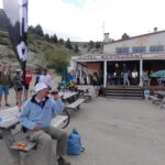 hartstikke koud, dus geen pretje om daar op iemand te staan wachten. Plateau Reynard, ligt 6 km onder de top van de Mont Ventoux en in beide beklimmingen, dus zowel uit Bedoin als uit Sault ga je via dat plateau naar boven. Vanaf dit plateau kom je in het voor de Mont Ventoux herkenbare ‘maanlandschap’. In dit stuk komen stukken voor met een stijgingspercentage van 11%. Na een korte pauze op het plateau vertrok ik voor de laatste 6 km. Ondanks het mooie uitzicht ging het heel moeizaam naar boven. Mijn benen wilden nog steeds niet meewerken. Om 09.20 uur was ik voor de eerste keer op de top en werd ik welkom geheten door de medewerkers van de verzorgingspost bij het weerstation op de top van de berg. Toen ik vertelde dat ik een busje zocht om weer naar beneden te gaan voor de tweede beklimming verklaarden ze mij voor gek. Toch doorgezet en met een shuttlebusje terug naar het plateau. Daar stapte Mirjam bij ons in de bus en werd ik naar Sault gebracht. Dat was de startplaats voor de wandelaars en hardlopers. In totaal waren er deze editie 54 wandelaars en 16 hardlopers. De wandelaars waren echter om 09.00 uur al weg geschoten. Onderweg naar beneden, naar Sault kwamen we hen dan ook tegen.