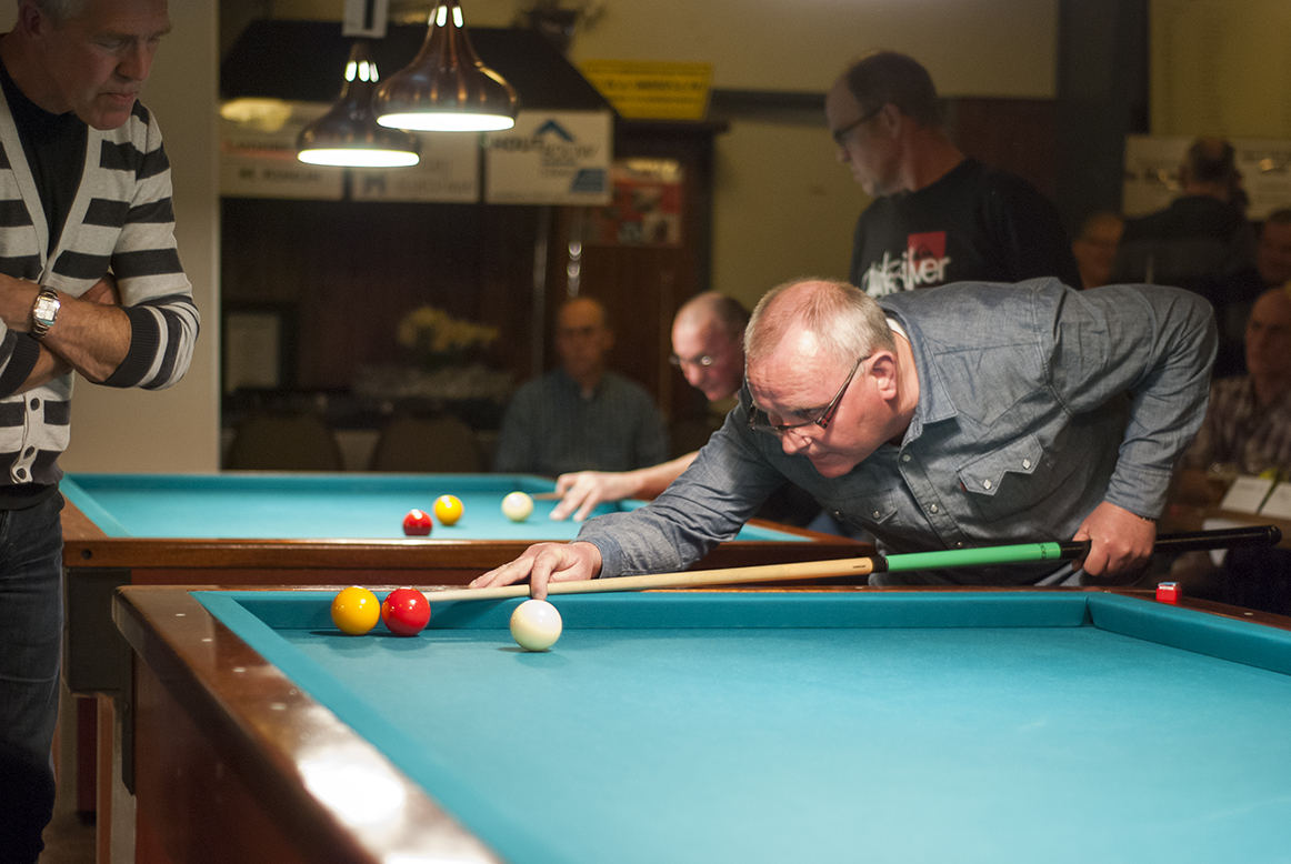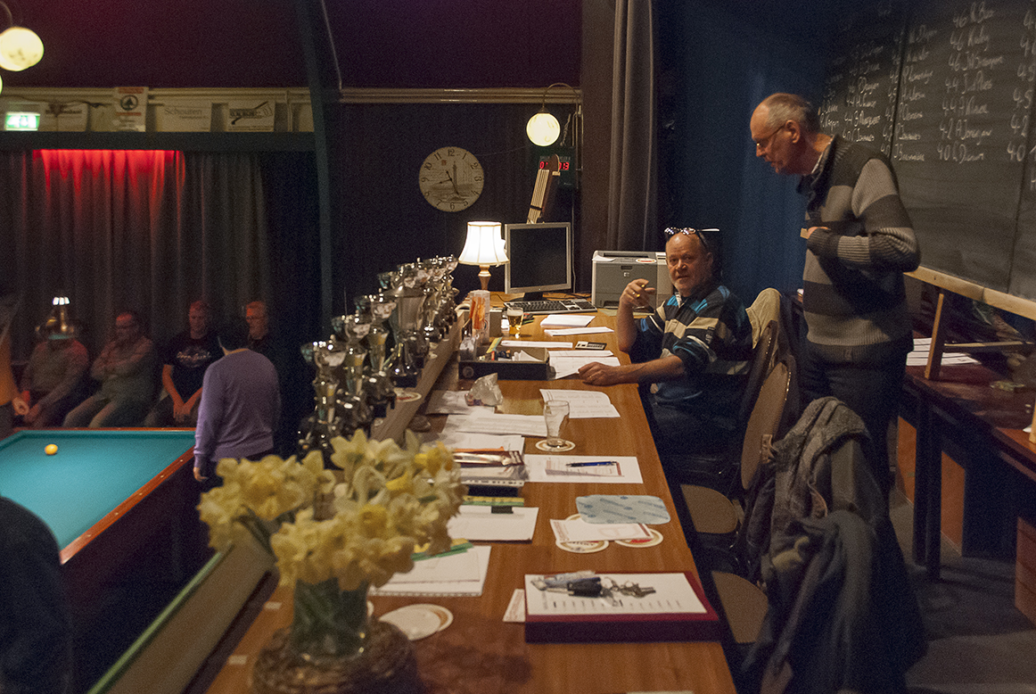 Tussen het biljarten door werden diverse jubilarissen in het zonnetje gezet. Gerrit van Twuijver en Piet Bleijendaal uit Callantsoog waren voor de 25ste keer deelnemer. Eerstgenoemde trad ook vaak op als arbiter en Piet is al weer jarenlang contactpersoon voor Callantsoog. Nico Hobma uit Sint Maartensbrug is 20 jaar contactpersoon voor zijn woonplaats. Willem Beekhuizen uit Oudesluis en Sam Lenting uit Petten doen hetzelfde 10 jaar. Alle drie ontvingen een aandenken en envelop met inhoud. Willem Jeninga, ’t Zand, werd gehuldigd vanwege zijn 20-jarig bestuurslidmaatschap.