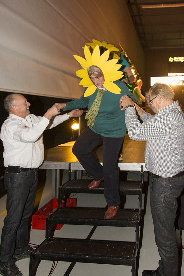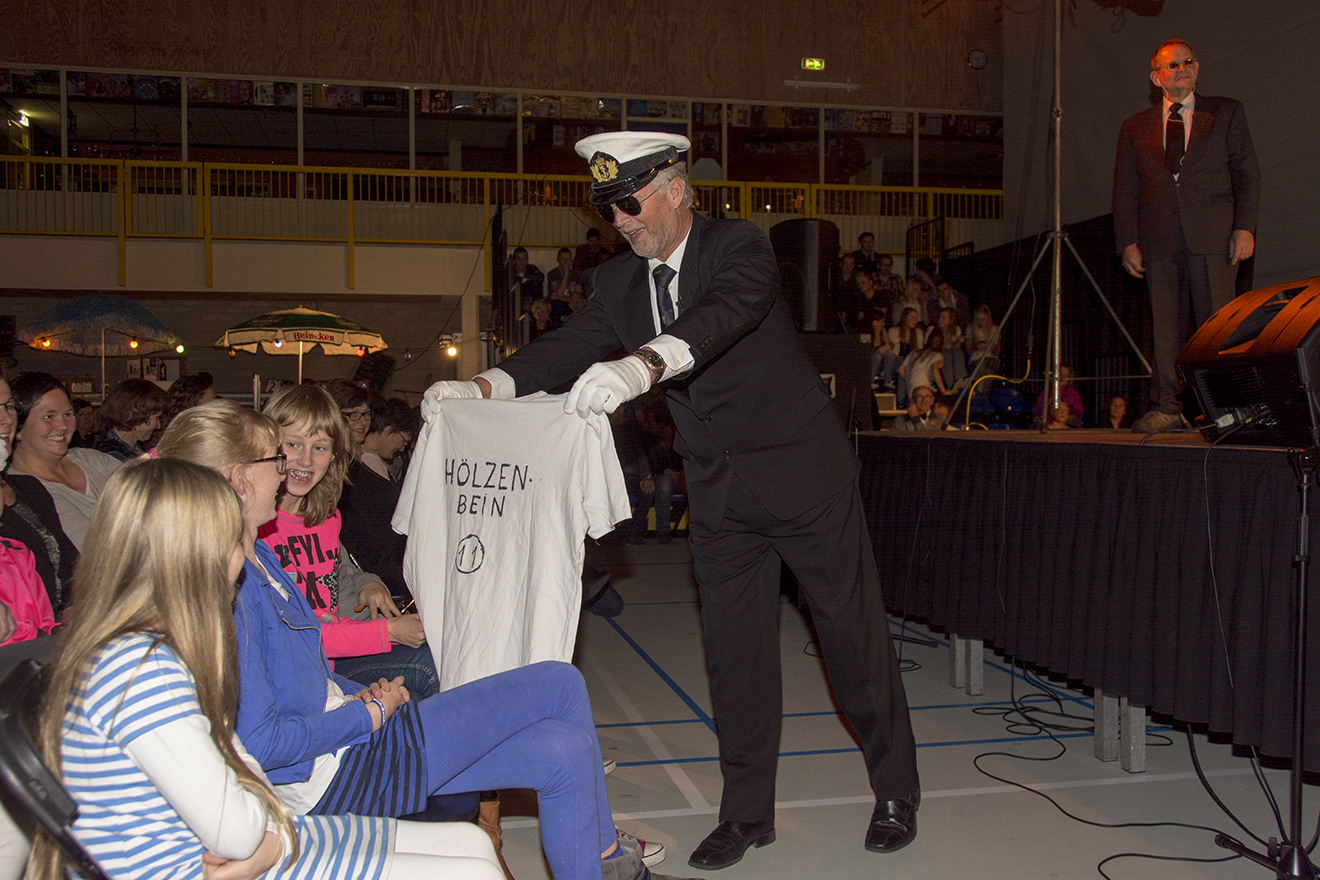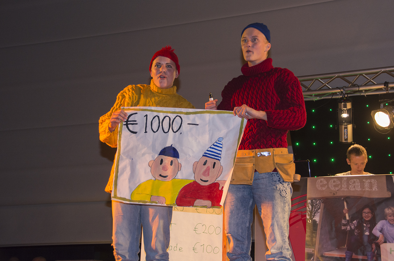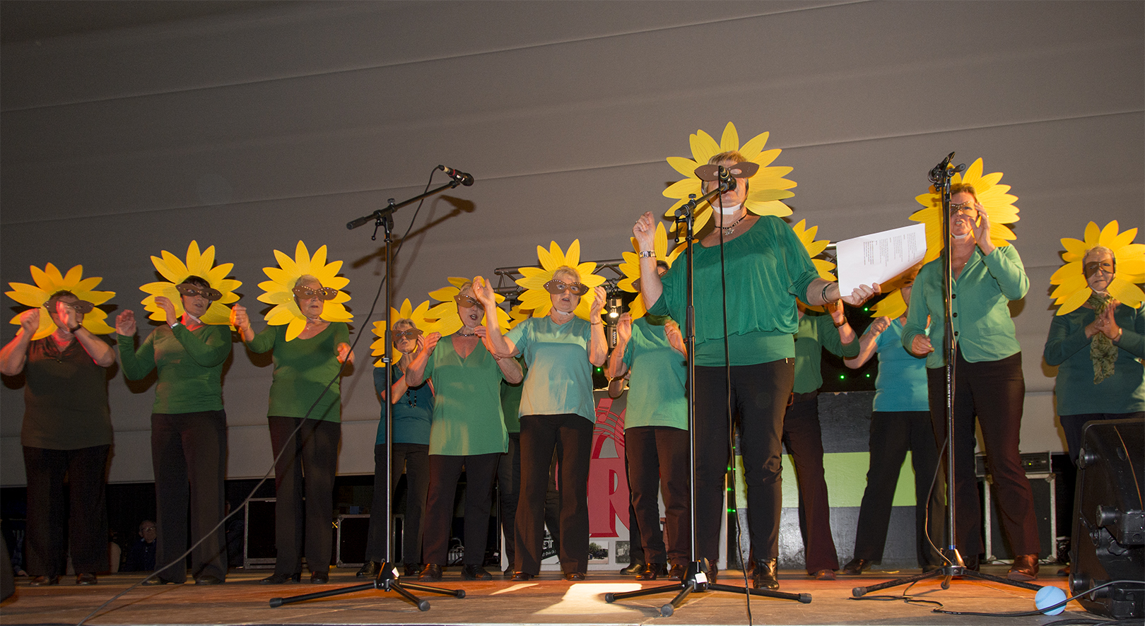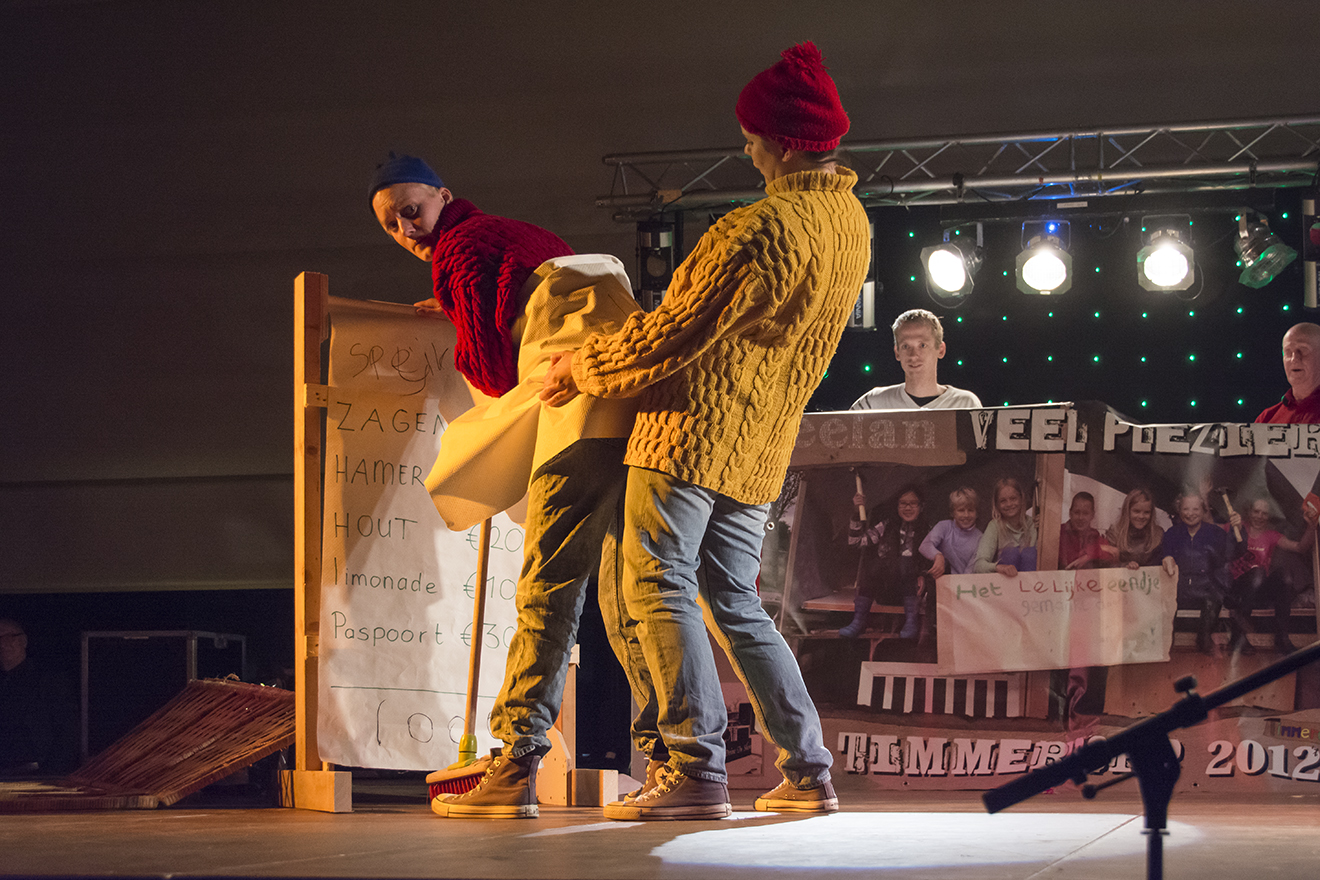 Een extraatje voor de clubkas is de insteek van de bonte avond. Liefst achttien verenigingen stonden in de Multitreffer op het podium en zij kregen – net als drie verenigingen die hielpen met op- en afbouwen – een bedrag van 125 euro. Presentator Ronald Bos gaf in zijn openingswoord ook aan dat dit een mooi middel is om het huishoudboekje van de verenigingen te spekken. Want, zo zei hij: ‘wie het kleine niet eert, is het grote niet weerd’. De spits werd om 19.35 uur afgebeten door Popkoor/PCI/Dorpsraad. Geheel gekleed in het zwart zongen zij een protestlied over de bezuinigingen en het wegvallen van de subsidies door de gemeente. De optredens die volgde waren divers, inspirerend en in alle gevallen bijzonder aardig om naar te kijken. Daar zaten gedurfde solo-optredens (The Serve en Sparta ’67) tussen maar ook een heuse ‘Zandstock de Kwis’. IJsclub Land van Buur kreeg de lachers op hun hand. Zij hadden een commerciële onderbreking gemaakt en zo zag het publiek geïnspireerd door de Calvé-reclame ineens een zesjarige John Deutekom op de tennisbaan alle ballen missen om vervolgens om latere leeftijd op zijn wielrenfiets hard voorbij fietsen. Toneelvereniging EMM bracht een voorstelling waarbij twee beveiligers waakten voor de kerk en de draak staken met de Zandtemers. Er waren ook verenigingsmensen die meerdere keren op het podium verschenen. Zo trad Jaap van der Ploeg namens biljartvereniging KOT en tennisvereniging ’t Zand op. Voor deze laatste club kwam er een uitvoering van Heino. Helaas hield Jaap zich niet helemaal aan de tijd en dat maakte zijn komische uitvoering kansloos voor de prijzen.