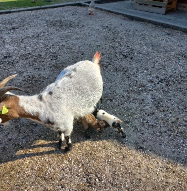 Ondanks deze tegenslag laten onze vrijwilligers zich echter niet uit van de wijs brengen en blijven zij in blijde verwachting van nog meer geitjes, want er moeten er nog meer geboren worden. Dit is toch altijd een prachtige gebeurtenis. Dieren die zonder hulp nakomelingen op de wereld zetten. Het blijft een wondertje.