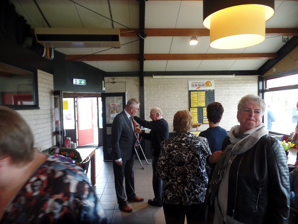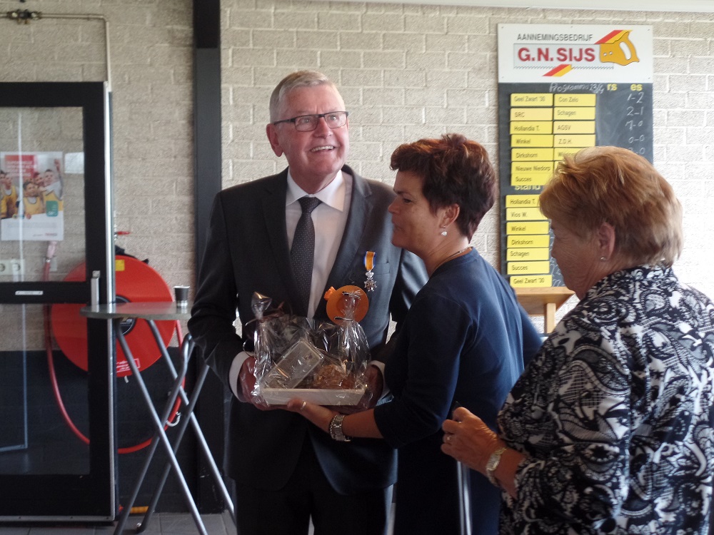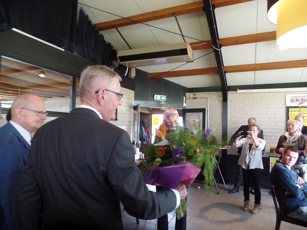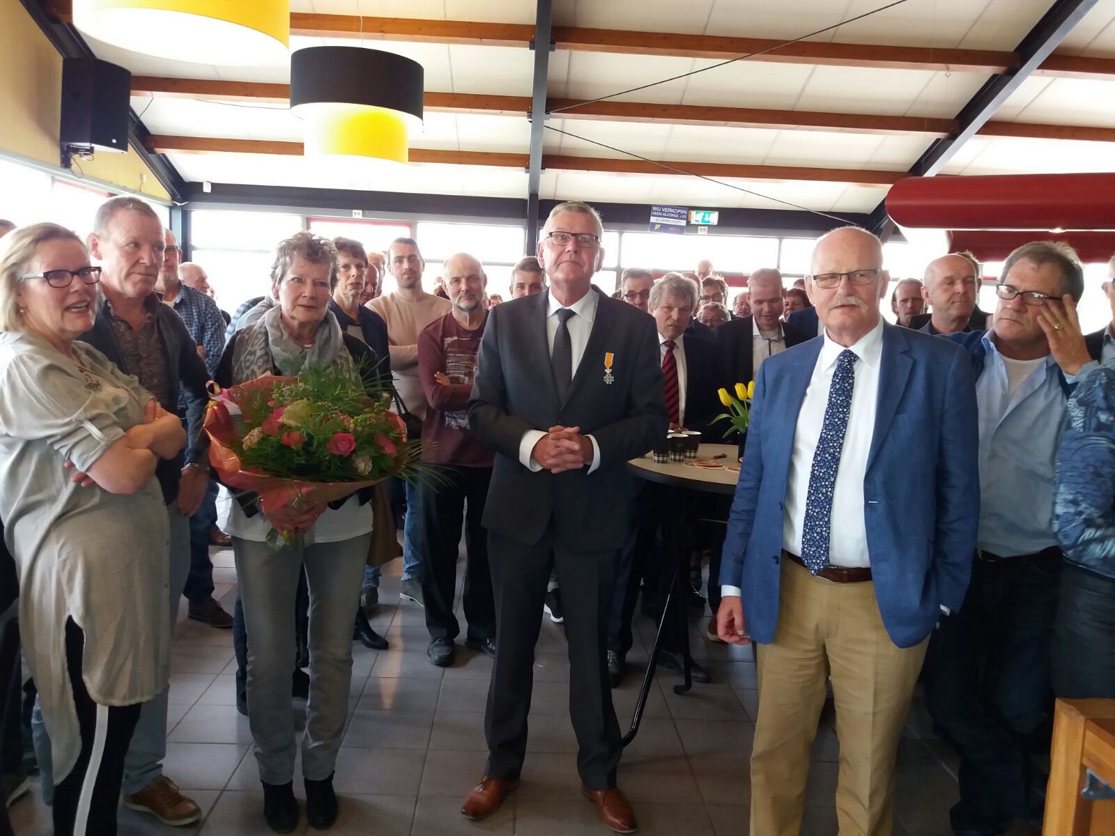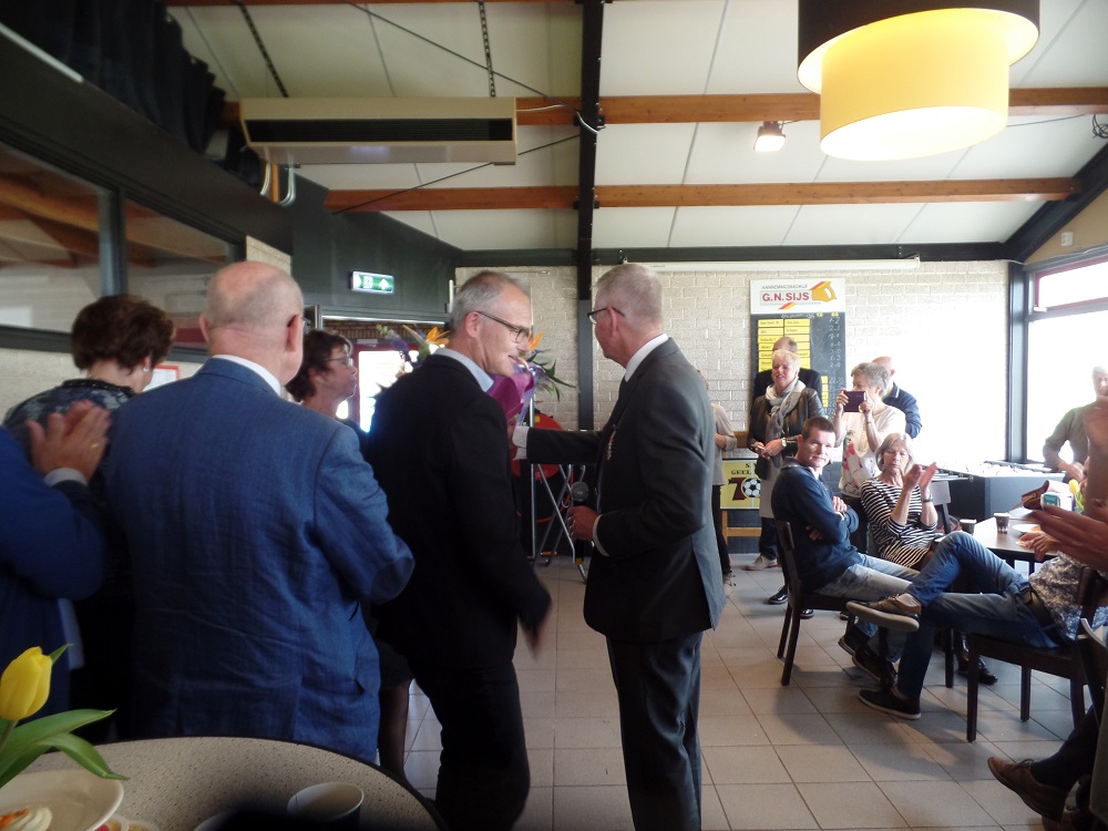 Het bleef niet bij één verrassing voor Bart. Bij terugkomst in ’t Zand werd Bart met een smoes naar de kantine van Geel Zwart gelokt. Hier stonden meer dan honderd personen klaar om Bart te feliciteren en spraken zijn vrouw Joke en voorzitter Bas Veul lovende woorden over deze supervrijwilliger. Zie hieronder voor foto’s van deze receptie