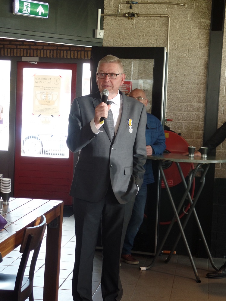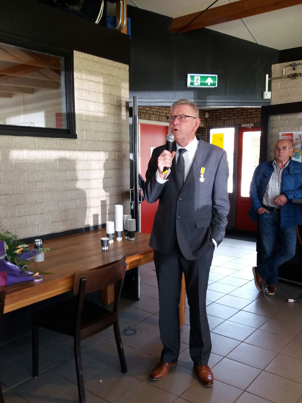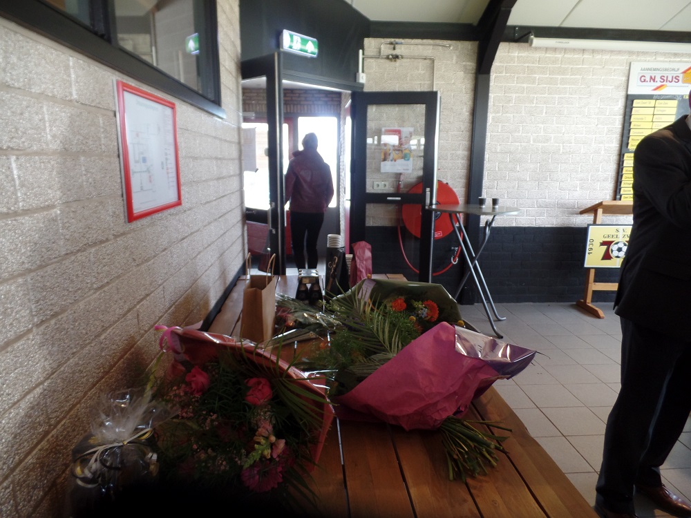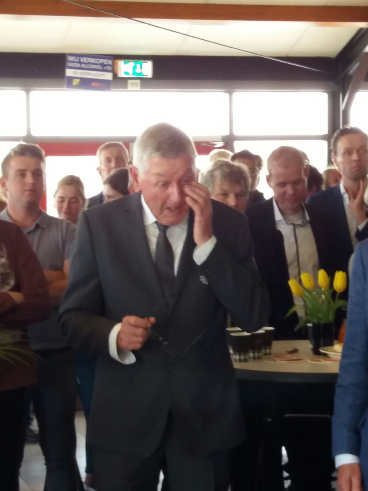 Het bleef niet bij één verrassing voor Bart. Bij terugkomst in ’t Zand werd Bart met een smoes naar de kantine van Geel Zwart gelokt. Hier stonden meer dan honderd personen klaar om Bart te feliciteren en spraken zijn vrouw Joke en voorzitter Bas Veul lovende woorden over deze supervrijwilliger. Zie hieronder voor foto’s van deze receptie