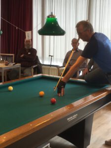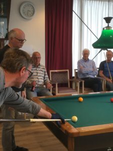 Na twee jaar Corona, zonder eind-toernooi, konden we dit nu eindelijk weer organiseren. Op dinsdag 26 en donderdag 28 april mochten de 16 spelers die het afgelopen jaar als de nummers een of twee in hun poule waren geëindigd, strijden wie er naar de finalemiddag op vrijdag 29 april gingen. Na een spannende dinsdagmiddag kwamen Jan Bakelaar, Henk van de Berg, Thijs Dekker en Jos Beers als besten uit de strijd. Peter Tesselaar wist met 10 caramboles de hoogste score in een beurt te pakken. Op donderdagmiddag speelden Martien Hoekman, Sjaak Kooiman, Niek Hertogh en Ben Wissink sterk en mochten ook door naar de finales op vrijdag. Ben Wissink wist zijn partij tegen Joop Bleijendaal in 5 beurten uit te maken en maakte met een serie van 16 caramboles meteen de hoogste serie van de middag en achteraf van het hele toernooi. Op de finale middag vrijdag 29 april was er veel publiek en werd er met veel strijd en passie gespeeld. Thijs Dekker startte heel enthousiast tegen Jos Beers door in 9 beurten zijn 25 caramboles te maken, maar kon de twee volgende partijen, ondanks goed spel ( 126%), niet winnen. Niek Hertogh ging onverstoord door, wist alle drie partijen winnend af te sluiten en werd dus eerste in zijn poule. Ben Wissink wisselde mindere partijen af met goede en kwam als tweede uit de strijd. Thijs Dekker en Jos Beers haakten af. Op de ander tafel eindigden er drie spelers met 4 punten en moest er gerekend worden wie er door mocht gaan. Mart Hoekman kwam daar als winnaar uit met 87%, als tweede kwam Jan Bakelaar uit de bus met 75%. Henk van de Berg viel met 68% net naast de prijzen. Sjaak Kooiman wist dat hij door een griepje niet in goede doen was en kon mede daardoor geen partij winnend afsluiten. De finale zou dus gaan tussen Mart Hoekman en Niek Hertogh. Om de derde en vierde plaats mochten Jan Bakelaar en Ben Wissink strijden. Ben begon de wedstrijd goed en stond in de negende beurt met 14 caramboles ruim voor op Jan die 6 caramboles wist te scoren. Bij Ben stagneerde zijn goede spel echter en kon Jan langzaam maar zeker de overwinning in 21 beurten binnenhengelen. Op de andere tafel stond er geen maat op Martien Hoekman. Niek Hertogh had in 9 beurten al 22 van de 37 caramboles gemaakt en hoopte op een goed eindresultaat. Het was echter niet voldoende voor de eindoverwinning. Martien Hoekman maakte In 12 beurten de te maken 17 caramboles en stapte als winnaar van het podium. Eindresultaat: Kampioen: Martien Hoekman, tweede: Niek Hertogh, derde: Jan Bakelaar en als vierde: Ben Wissink. De prijzen van het Kampioenschap van de SOOS worden tijdens de jaarvergadering van de SOOS uitgereikt op vrijdag 6 mei a.s. Een bedankje voor de morele steun is op zijn plaats voor het publiek, en ook tellers en schrijvers bedankt voor jullie inzet. We gaan nu genieten van de zomerstop en starten op maandag 5 september a.s. weer met de competitie. In de zomer is er natuurlijk weer vrij biljarten in de Zandstee. Voor de maan- en dinsdagmiddagclub is die mogelijkheid er op de maandagmiddag. Voor de woens- en donderdagmiddag is dat op donderdagmiddag. Graag opgeven bij André Hertogh (maandag) of Henk Kleef (donderdag). Het Jan Groot toernooi zal in de eerste week van het nieuwe jaar 2023 worden gespeeld. Ik wens iedereen een goede zomer toe.