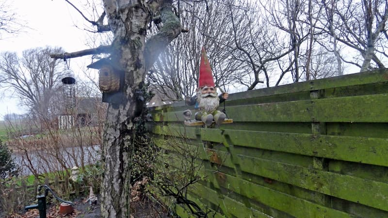 De storm Caira raast over het land, de schade in ’t Zand lijkt mee te vallen. Onze schommelende kabouter van Rien Poortvliet heeft het reuze naar zijn zin, je ziet een lach op zijn gezicht…. Tot ineens die vreselijke gil, zijn ellenboog raakt onzacht de boom, gebroken…. Even spalken en jawel hij schommelt weer vrolijk lachend verder.