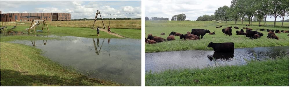 Ja, toen gingen we zelf op pad, met z’n vieren Vrijbuiteren in het Hof van Dalfsen. Men was daar nog aan het bijkomen van de wateroverlast. Hoewel getuige de foto’s was het niet voor iedereen een last. Lekker gefietst, met zelfbediening pontje over de Vecht, op naar de warme hap, het drankje, spelletje en uiteindelijk naar bed.