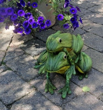 Het heeft geregend, de tuin juicht, er wippen heel veel kleine kikkertjes over het natte straatje, je moet goed uitkijken waar je je grote voeten neerzet..