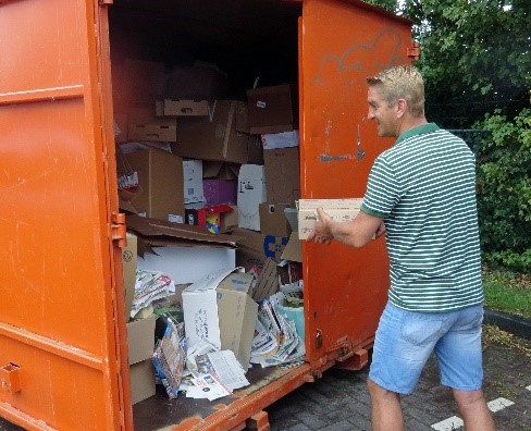 De laatste oud papieractie van Geel-Zwart kent een grote opbrengst. Oud coördinator Bart Hoekman, zijn opvolger Erik Deutekom en Geel-Zwart-voorzitter Bas Veul zijn deze dag de stapelaars.