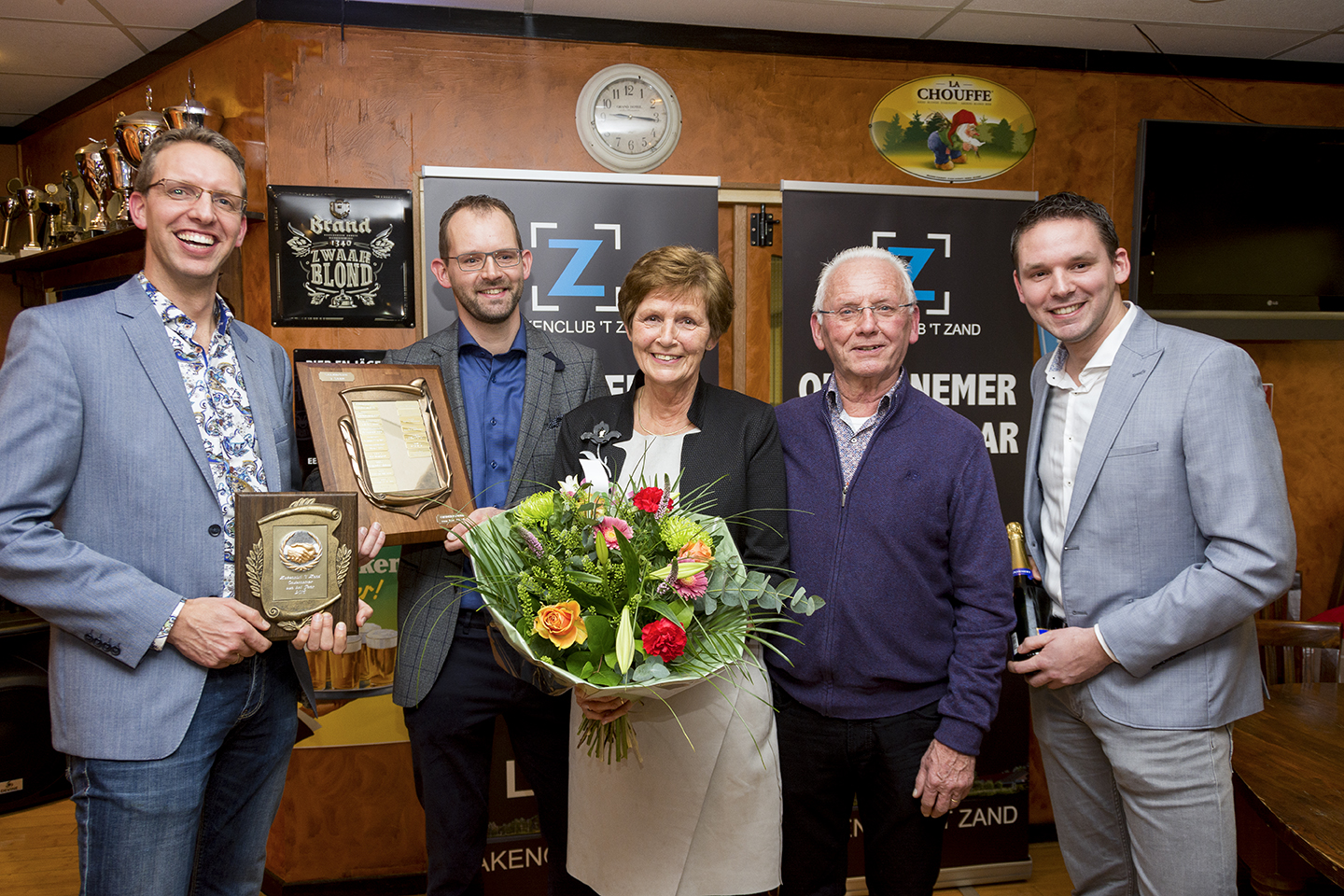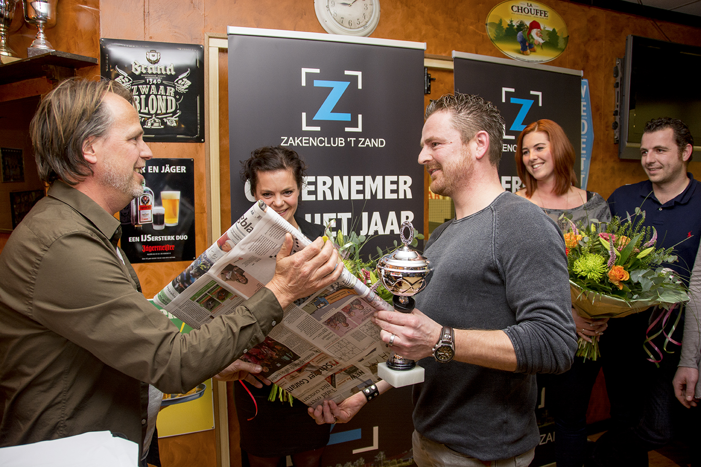 Naast de familie Van Diepen viel ook Pieter de Geus in de prijzen. Hij won met zijn Sportcafé ’t Zand de publieksverkiezing van het Noordhollands Dagblad. Maar liefst 3800 mensen brachten hun stem uit. De Zakenclub ’t Zand deelde een pluim uit naar de stichting die het hertenkamp in ’t Zand beheert.