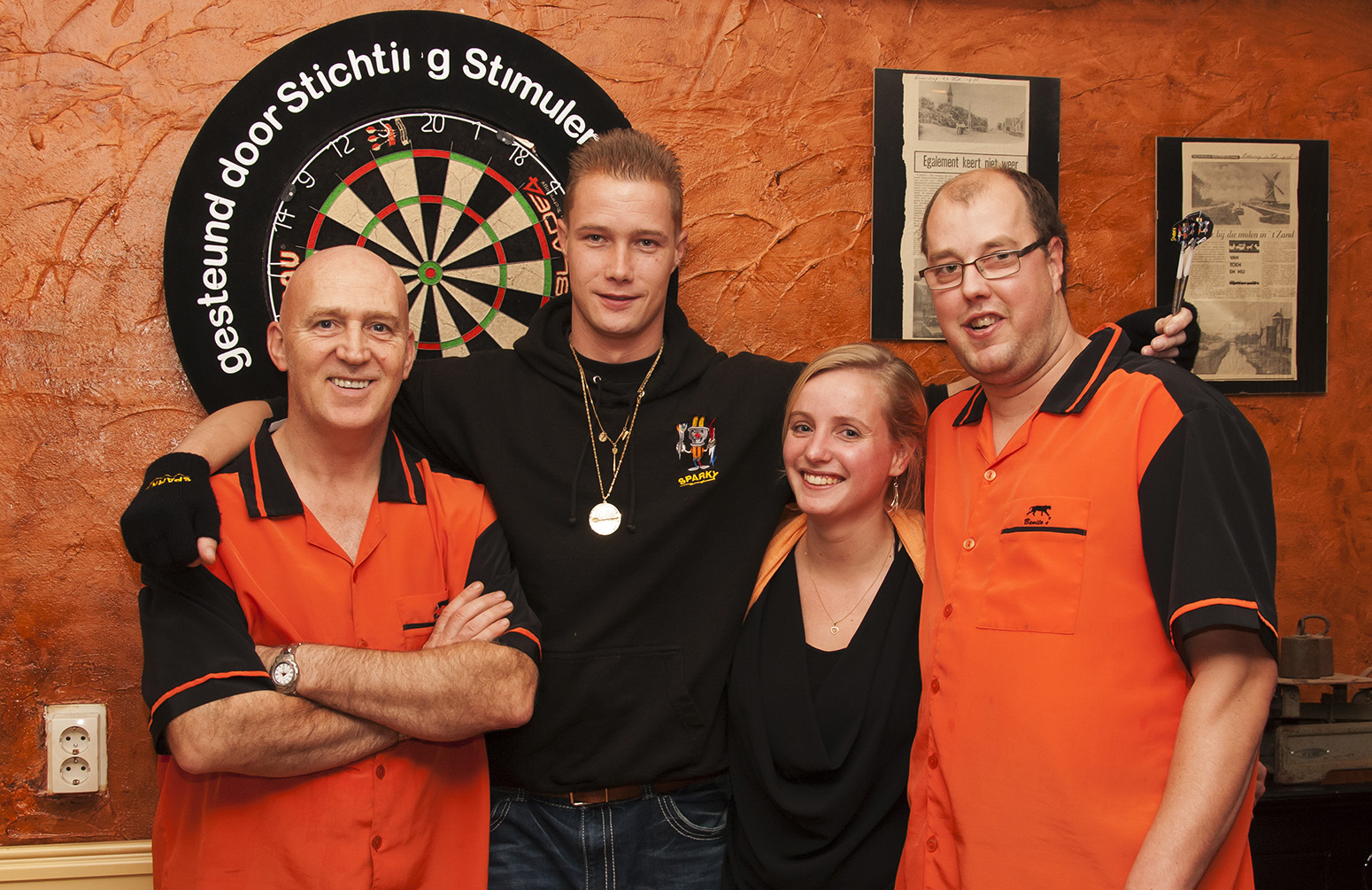 Multitreffer. De gasten wonnen uiteindelijk met 9-0. Alleen Ronald Mesman wist een leg te winnen. Zelfs John Kooijman kon geen potten breken. Bart Hertogh had de eer om tegen Wesley Harms te spelen. De Zandtemer darters gaan de beker nu voortzetten in de verliezersronde. Geen schande maar wel een leuke ervaring. Op de foto staat Wesley Harms met Ronald Mesman, John Boy Kooijman en Daisy van Leeuwen.