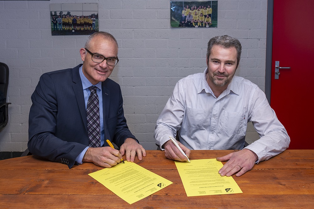De kersverse ondernemer van het Jaar Fietsen van Graas heeft een reclamebord afgenomen langs het A-veld van Geel Zwart. Frank van Graas ondertekende met voorzitter Bas Veul  onlangs het contract.