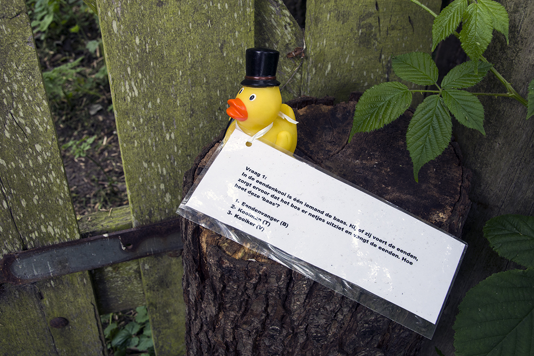 Voor de jeugd was een puzzeltocht uitgezet. In de vorm van badeendjes die langs de route stonden met daarbij een vraag, leverden de goede antwoorden een woord op.