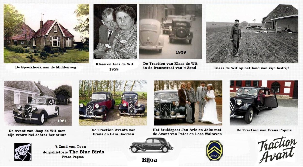 Voor zover ik weet hebben niet alleen Klaas en Lies de Wit maar ook de familie Swan uit de Bosweg destijds in een Traction Avant gereden. Zoon Jaap, getrouwd met Nel Johannes van het toenmalige garagebedrijf aan de Rijksweg heeft nog jaren de Traction Avant van zijn vader in bezit gehad. Jaap heeft de auto zelfs wat sportiever gemaakt en voorzien van witte zijvlakken. Ook heeft hij er een autoradio ingebouwd, hetgeen voor die tijd nog uniek was. Op dit moment is er nog steeds een Avant in ‘t Zand. Frans Boersen maar ook zijn broer Sam uit Schagen hebben ieder een Traction met opvallende rode zijvlakken. Ze zijn net als vele andere Traxionisten verknocht aan deze Frans automobiel. Ook mijn overleden vriend Peter Walraven uit Den Helder (eerder Anna Paulowna) heeft nog enkele jaren in een Traction Avant gereden. Hij heeft met zijn voiture zelfs zijn collega Jan-Arie Strooper en zijn bruidje Joke er een onvergetelijke huwelijksdag mee bezorgd.