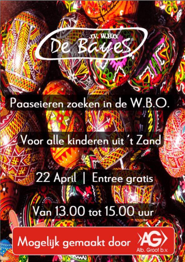 22 April kunnen alle kinderen uit ’t Zand paaseieren komen zoeken in de W.B.O.